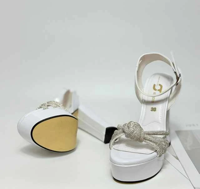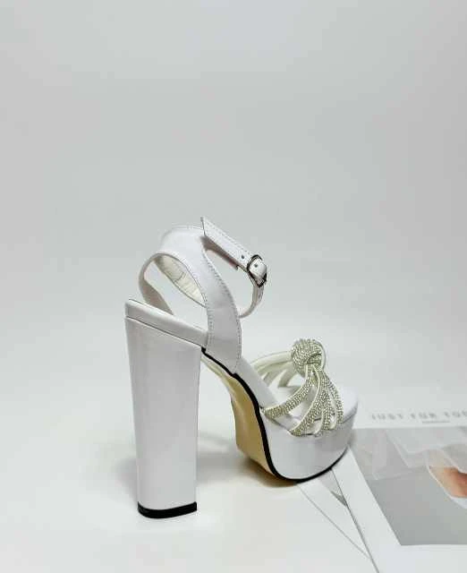 حذاء بكعب عالٍ يتميز بتصميم أنيق وعصري. يعتمد على قاعدة سميكة تضيف توازناً وثباتاً،