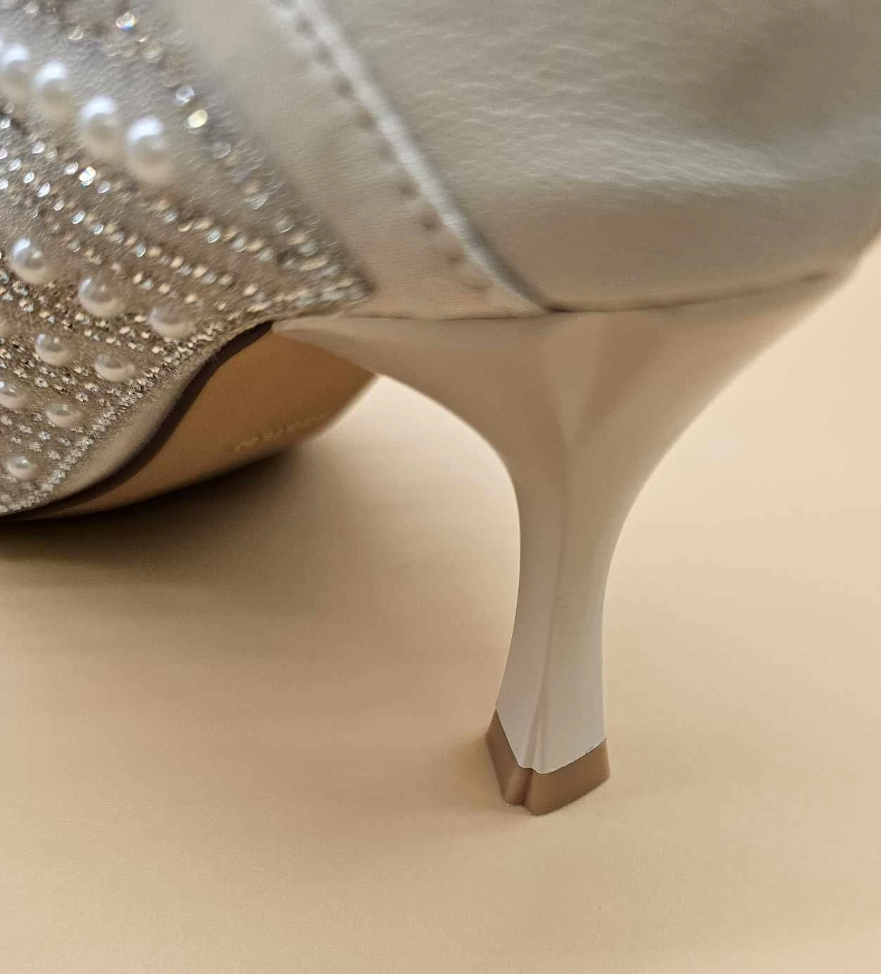 حذاء بكعب عالي مزين بالؤلؤ