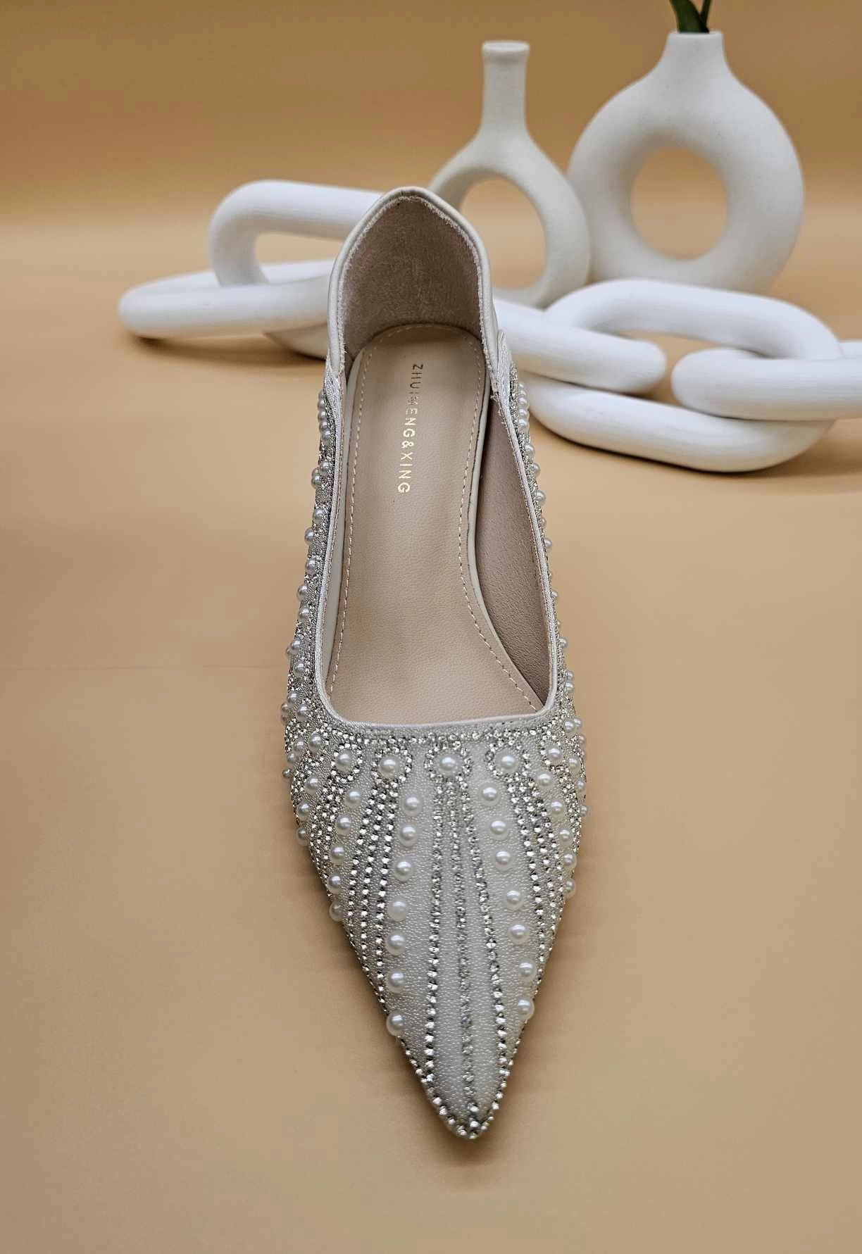 احذيه نسائيه عاليه الكعب مدببه الاصابع مزين بحجر الراين و اللولو مريحه للاحتفالات والسهرات وحفلات الزفاف لجميع فصول السنه مثاليه لفساتين السهرة