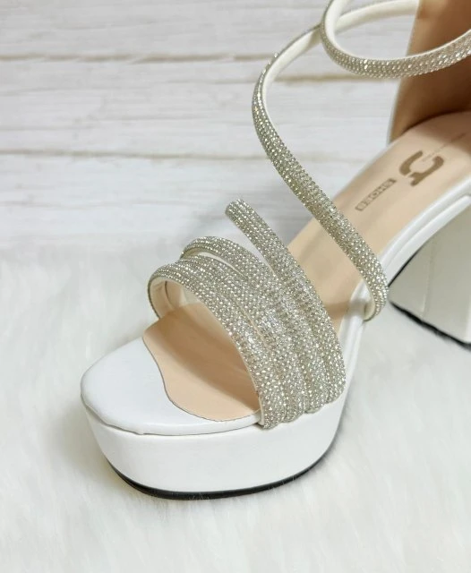يزينه عدد من الأحزمة المتقاطعة التي تعانق القدم والكاحل بشكل أنيق،