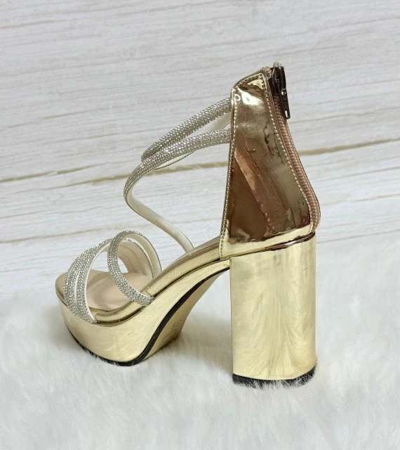 الحذاء يتميز بتصميم راقٍ وعصري، حيث يأتي بكعب عالٍ وعريض يمنح توازناً وثباتاً أثناء المشي.