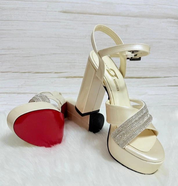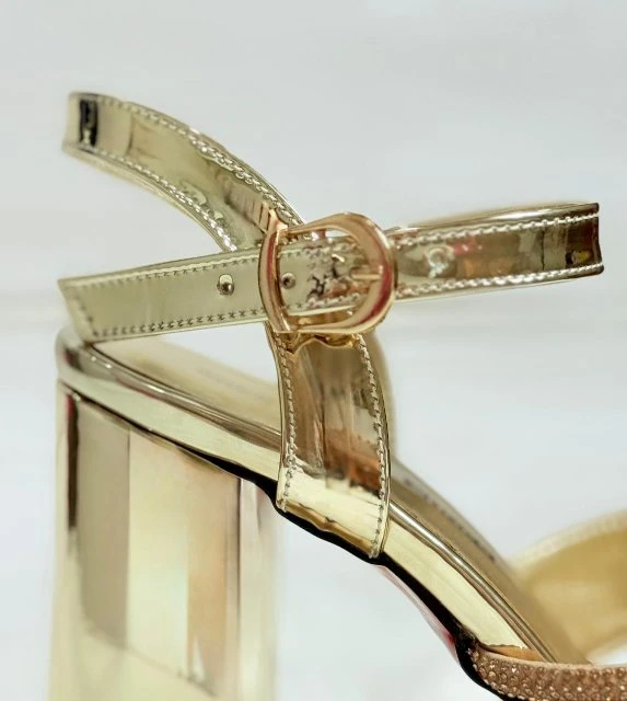 بعضها مغطى بتفاصيل لامعة تضيف لمسة فاخرة. الحذاء يعكس طابعًا فاخرًا ومناسبًا للمناسبات الخاصة والسهرات.