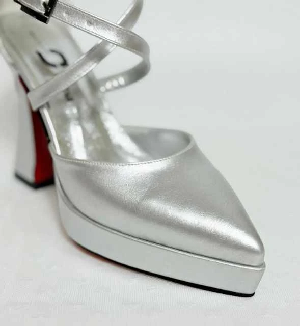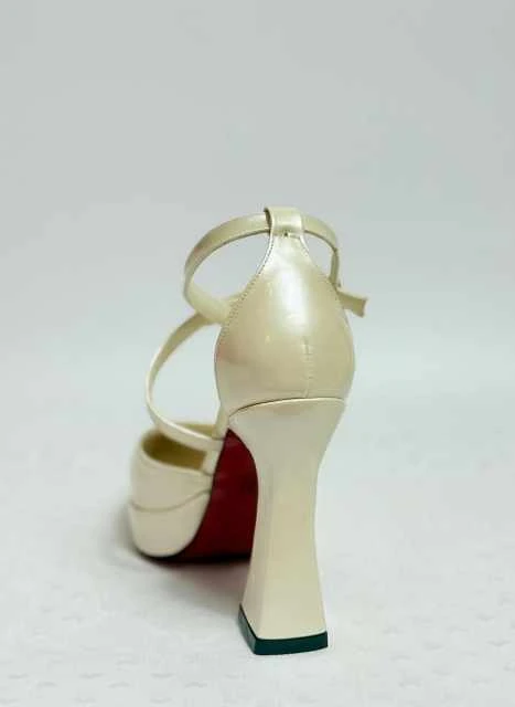 - **حزامان متقاطعان عند الكاحل** مزودان بإبزيم للإغلاق لمظهر عصري وثبات مثالي.