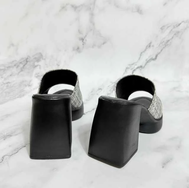 - كعب عريض ومربع الشكل لضمان الثبات والراحة.