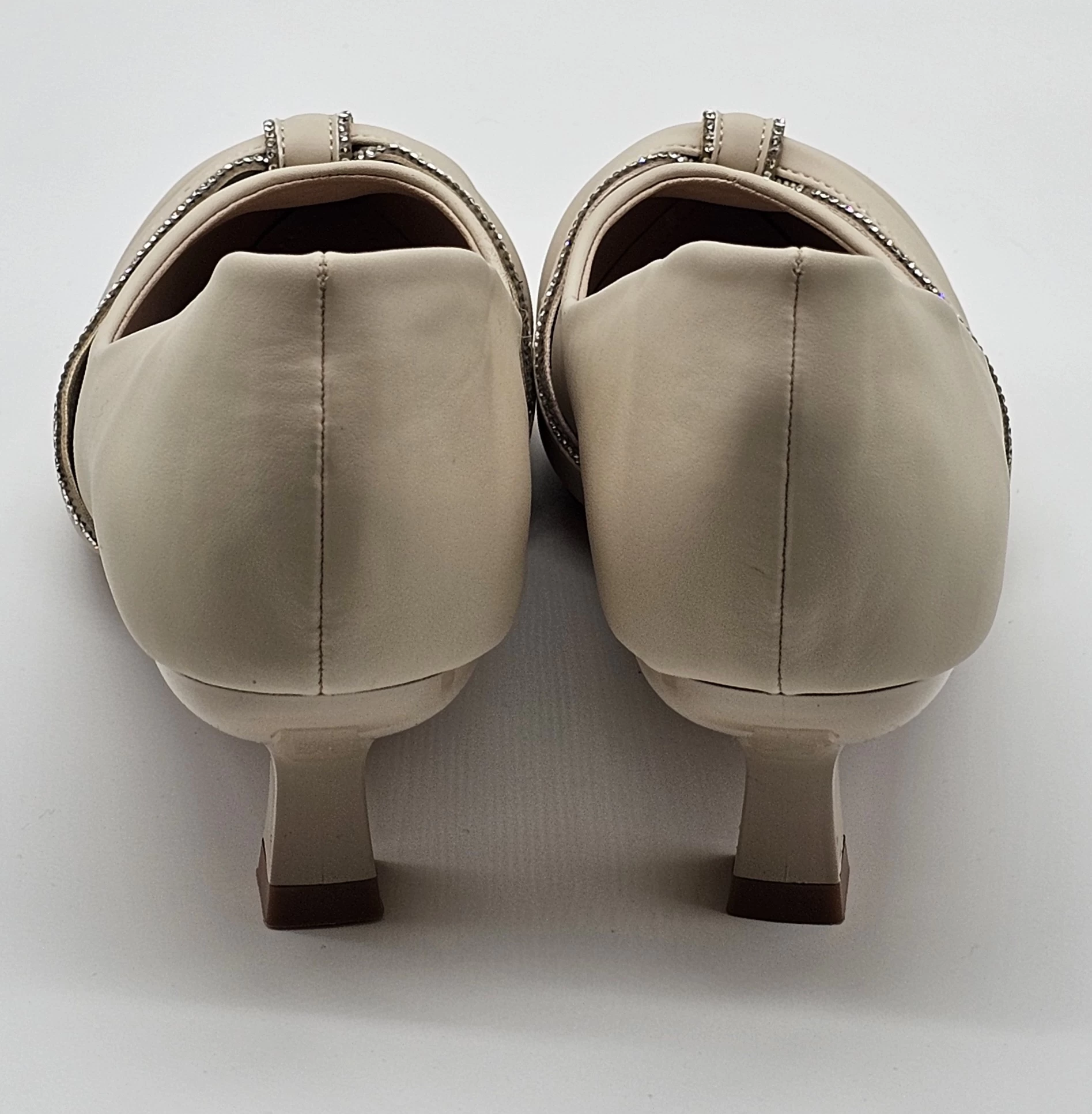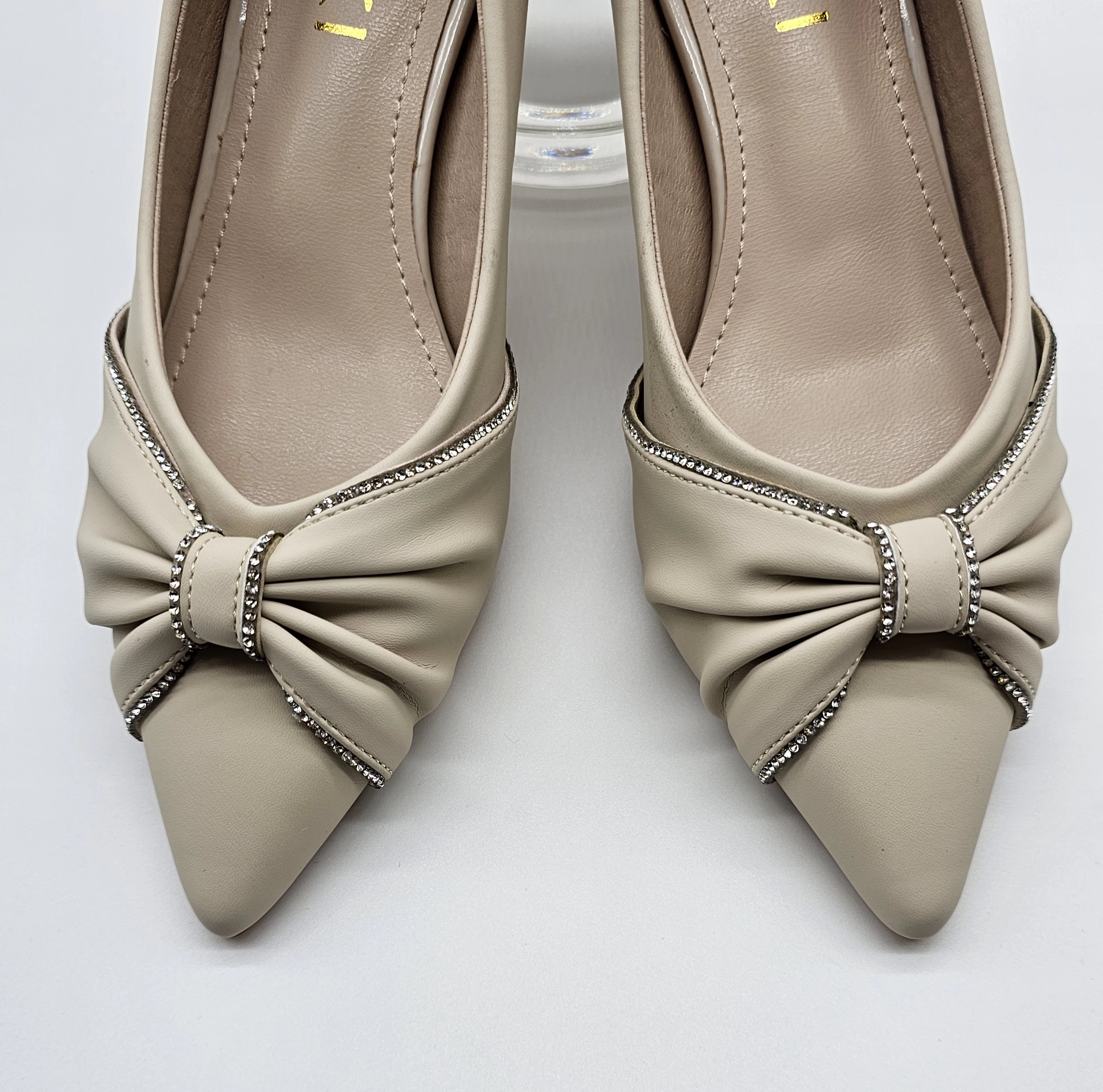 حذاء بكعب عالي بمقدمه مدببه بشريط كرستال وتفاصيل فيونكه انيق وفخم للمناسبات والحفلات