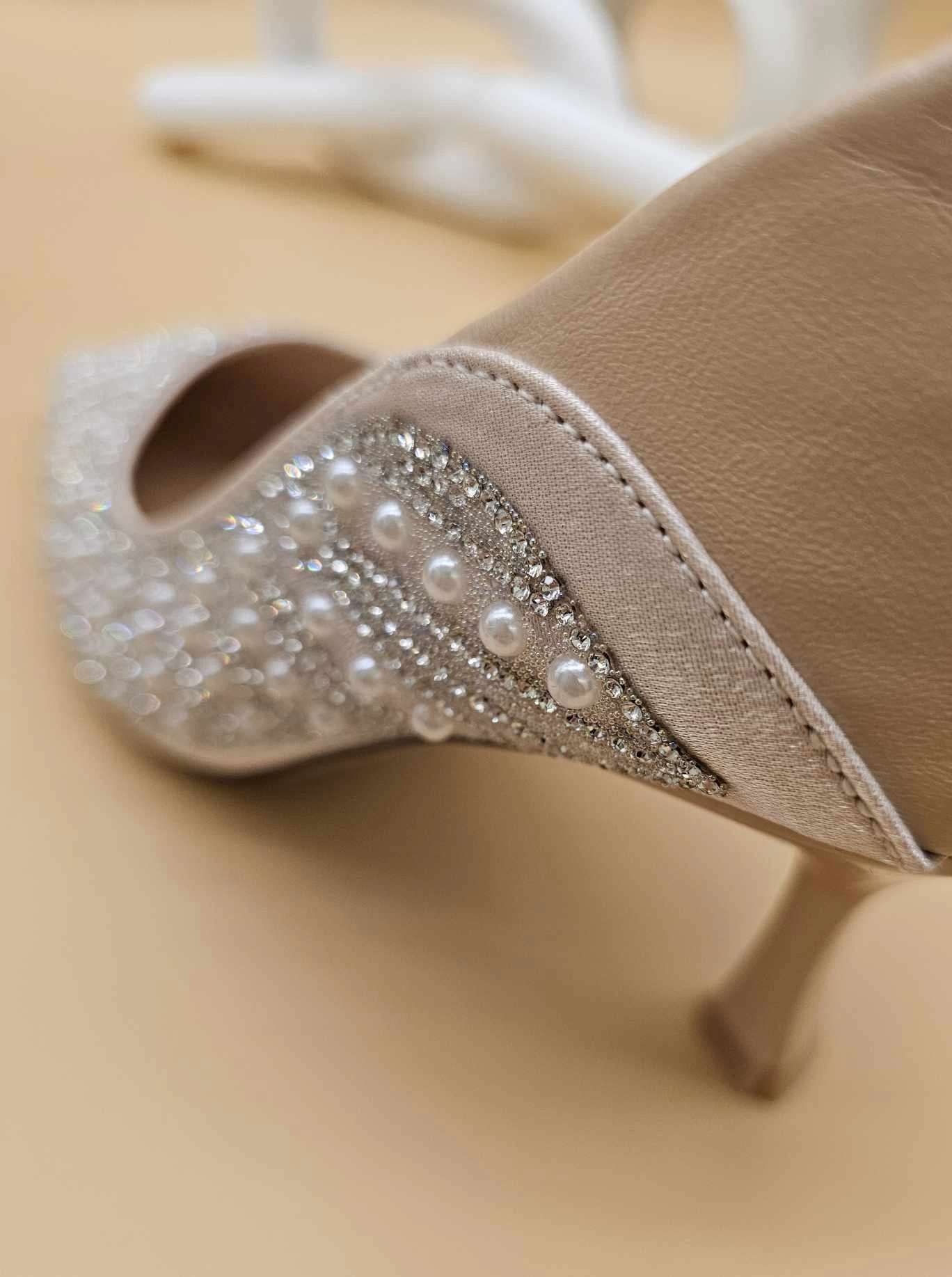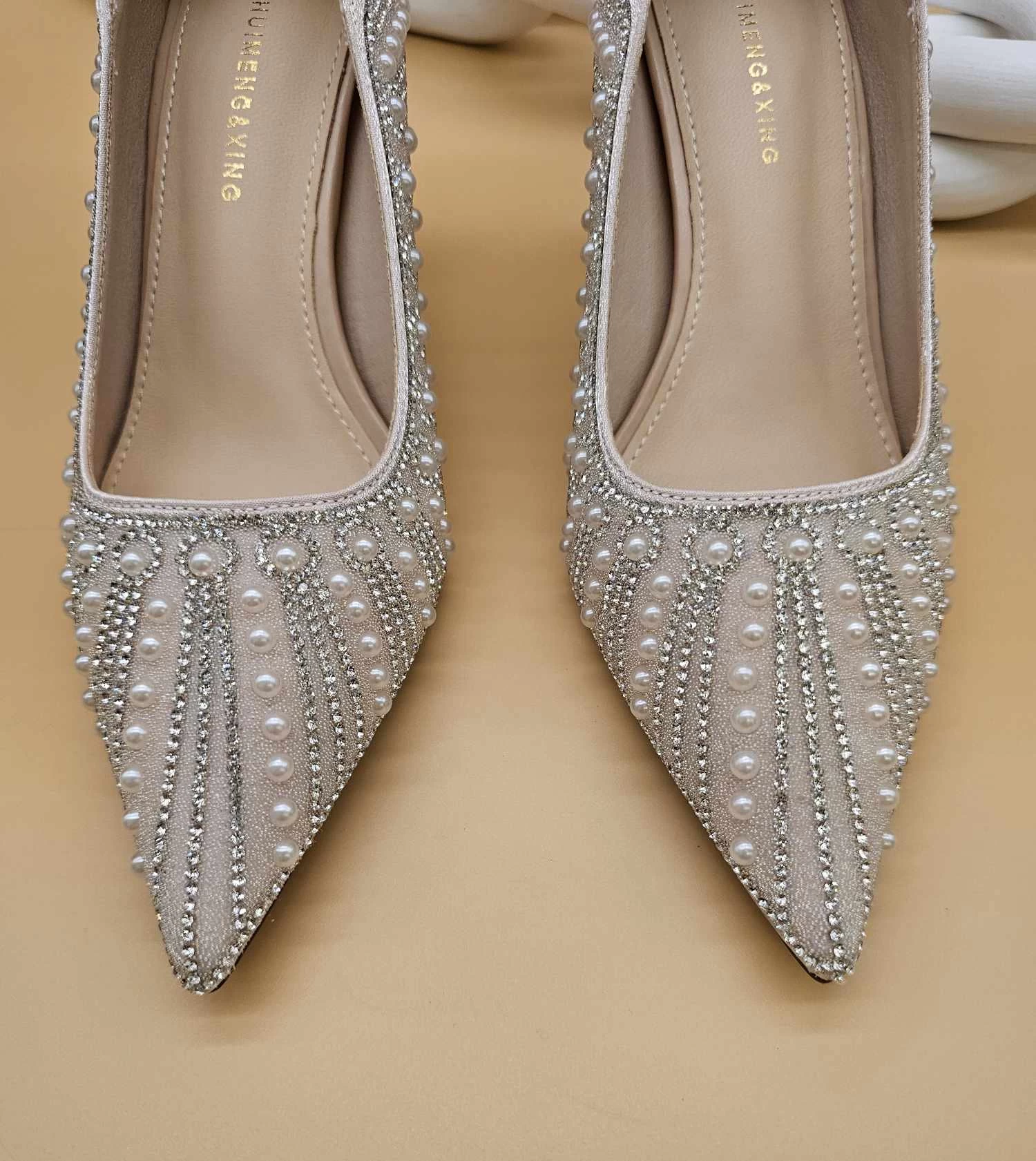 احذيه نسائيه عاليه الكعب مدببه الاصابع مزين بحجر الراين و اللولو مريحه للاحتفالات والسهرات وحفلات الزفاف لجميع فصول السنه مثاليه لفساتين السهرة