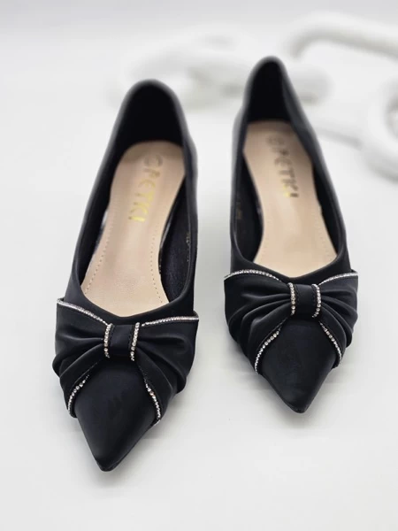 حذاء بكعب عالي بمقدمه مدببه بشريط كرستال وتفاصيل فيونكه انيق وفخم للمناسبات والحفلات