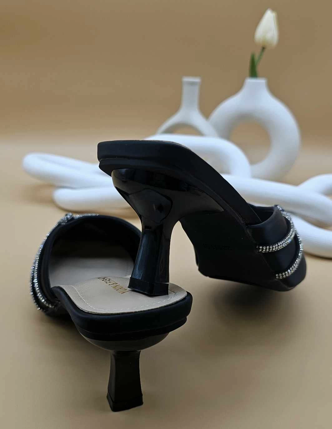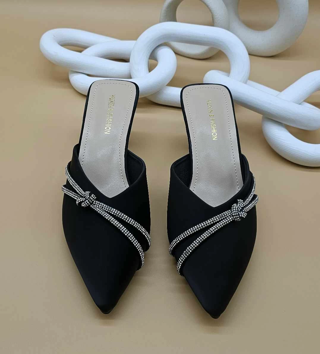 احذيه نسائيه بكعب عالي بمقدمة مدببه مزينه بحجر الراين سهل الارتداء مناسب للحفلات والمناسبات
