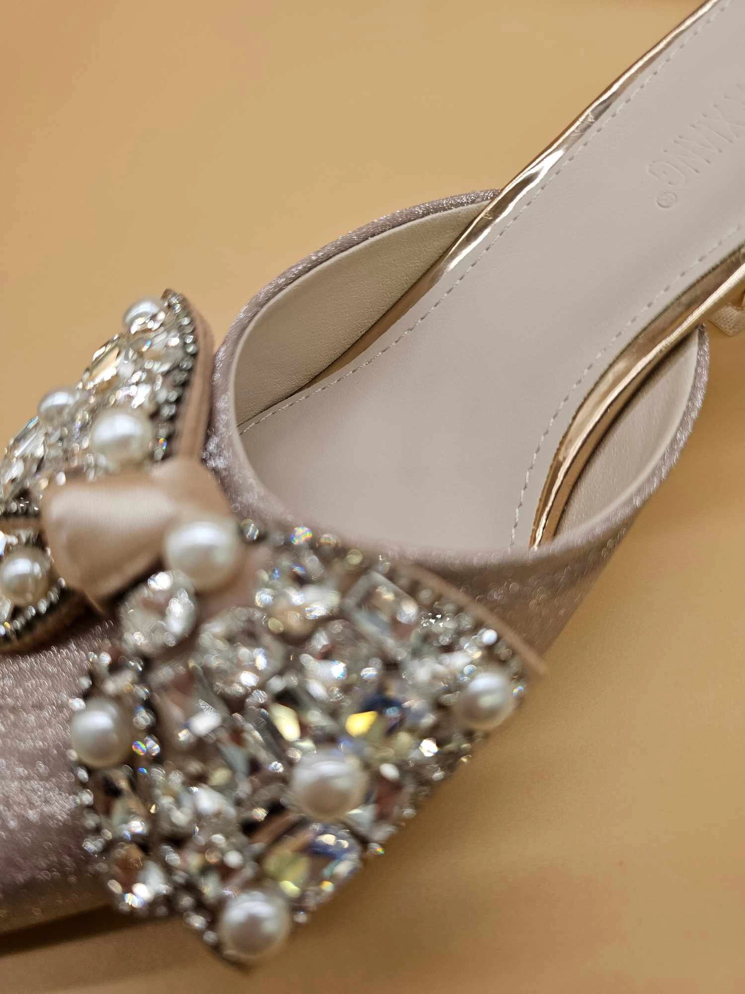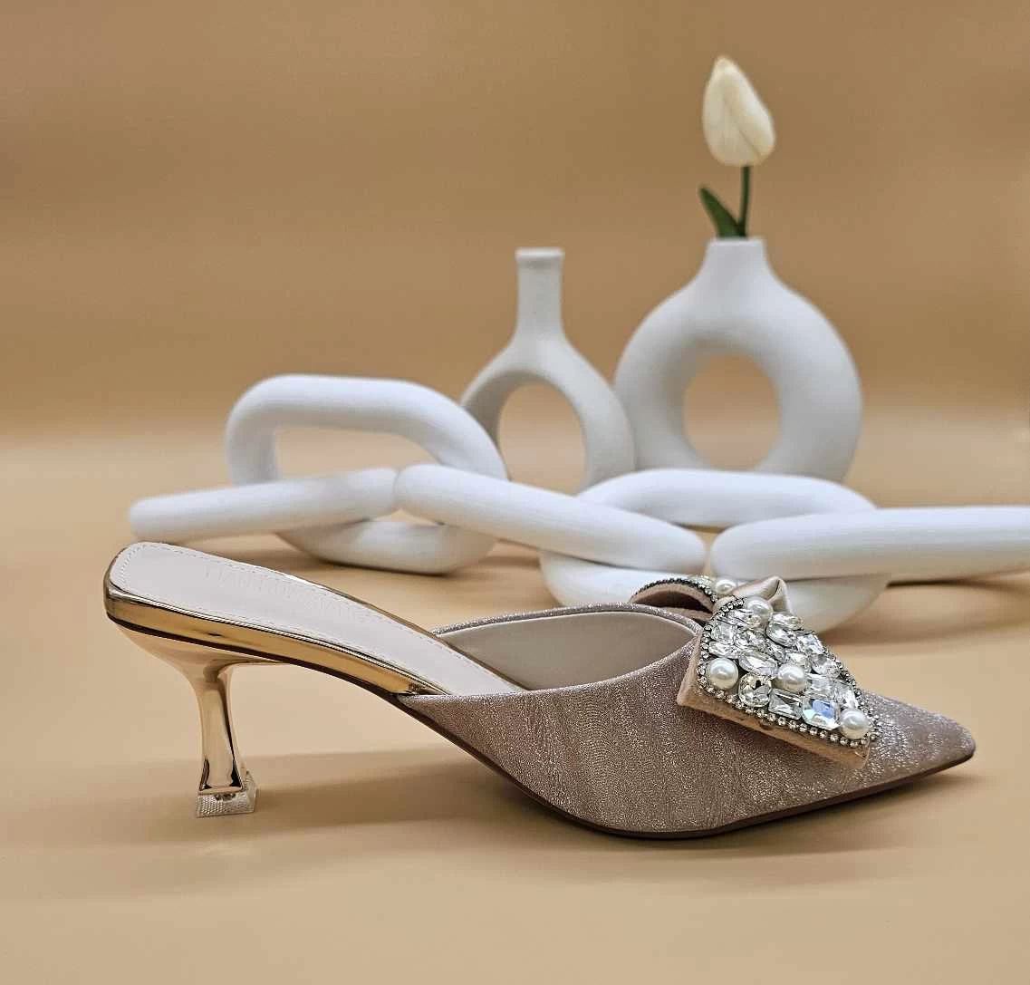 حذاء نسائي بكعب عالي مزين بالؤلؤ