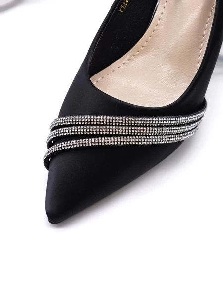 هذا الحذاء بتصميمه المميز والبسيط باناقته الملفته يزيدك اناقه وجمال فهو حذاء بكعب عالي مدبب الاصابع ومزين بشرائط كريستاليه مناسب في الحفلات ةالمناسبات