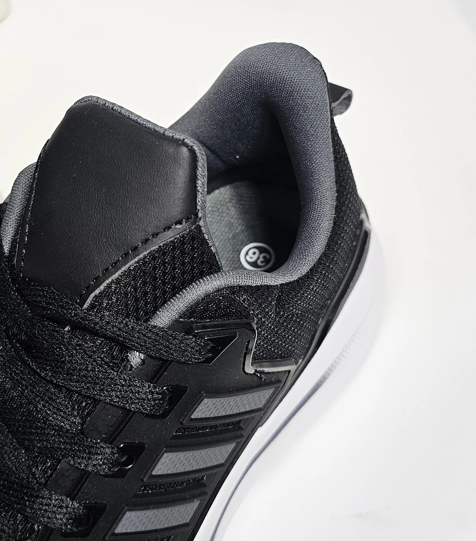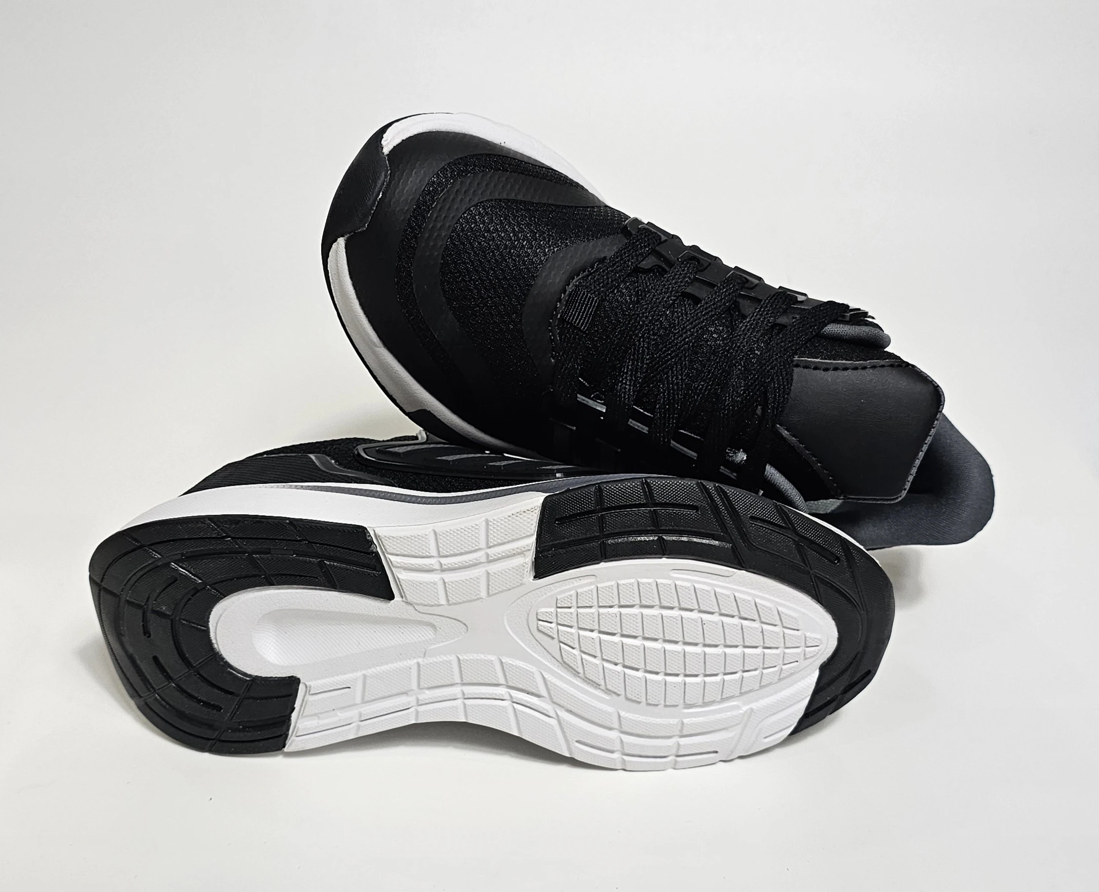 الحذاء يتميز بتصميم رياضي حديث، مصنوع من مواد مزيجة بين القماش