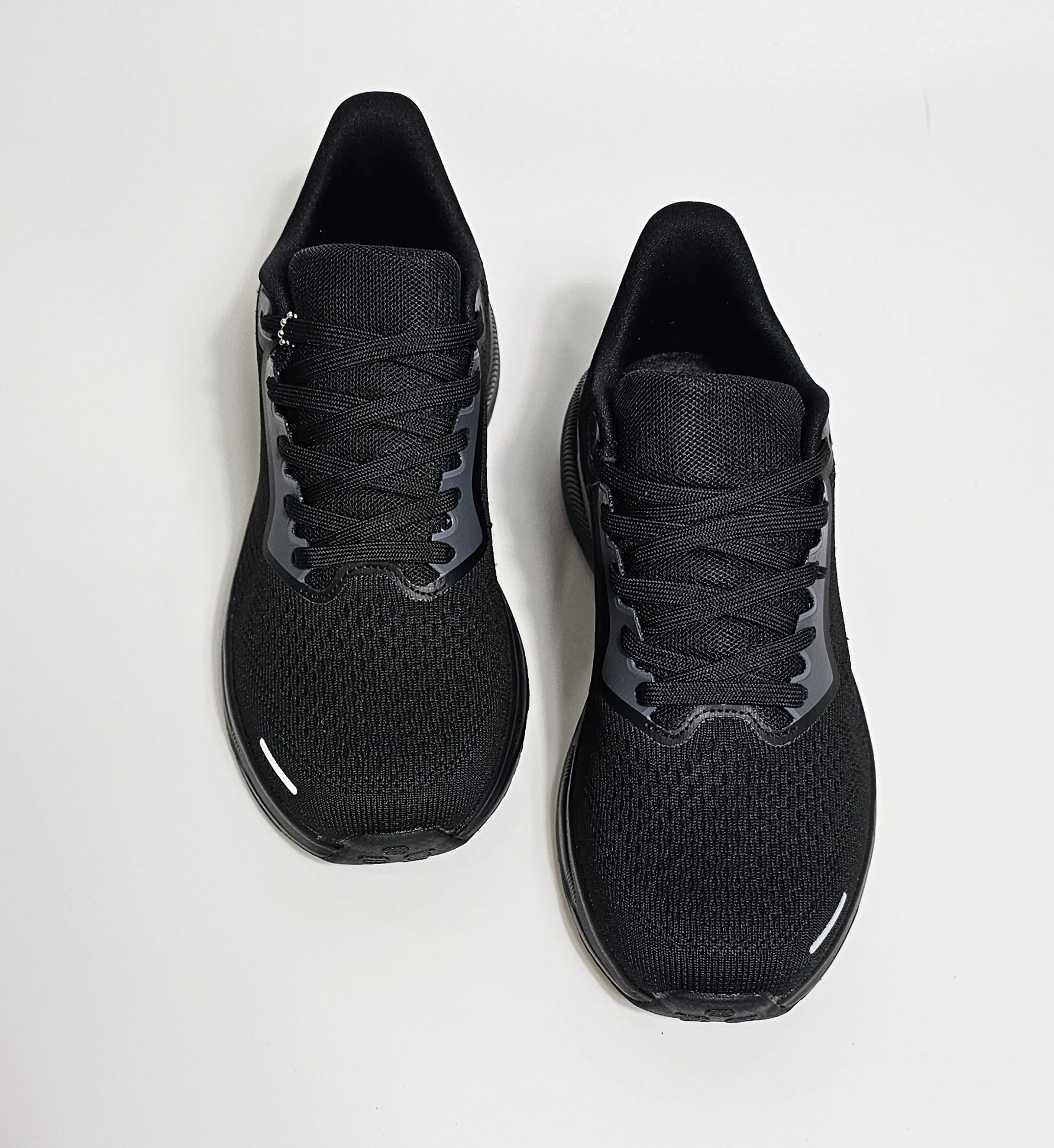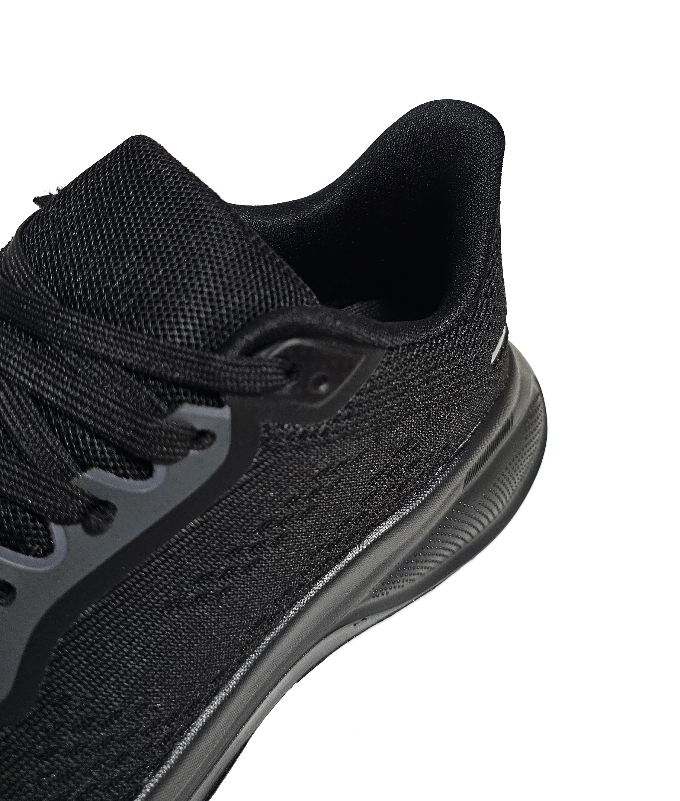 الحذاء يتميز بتصميم رياضي بلون أسود بالكامل.