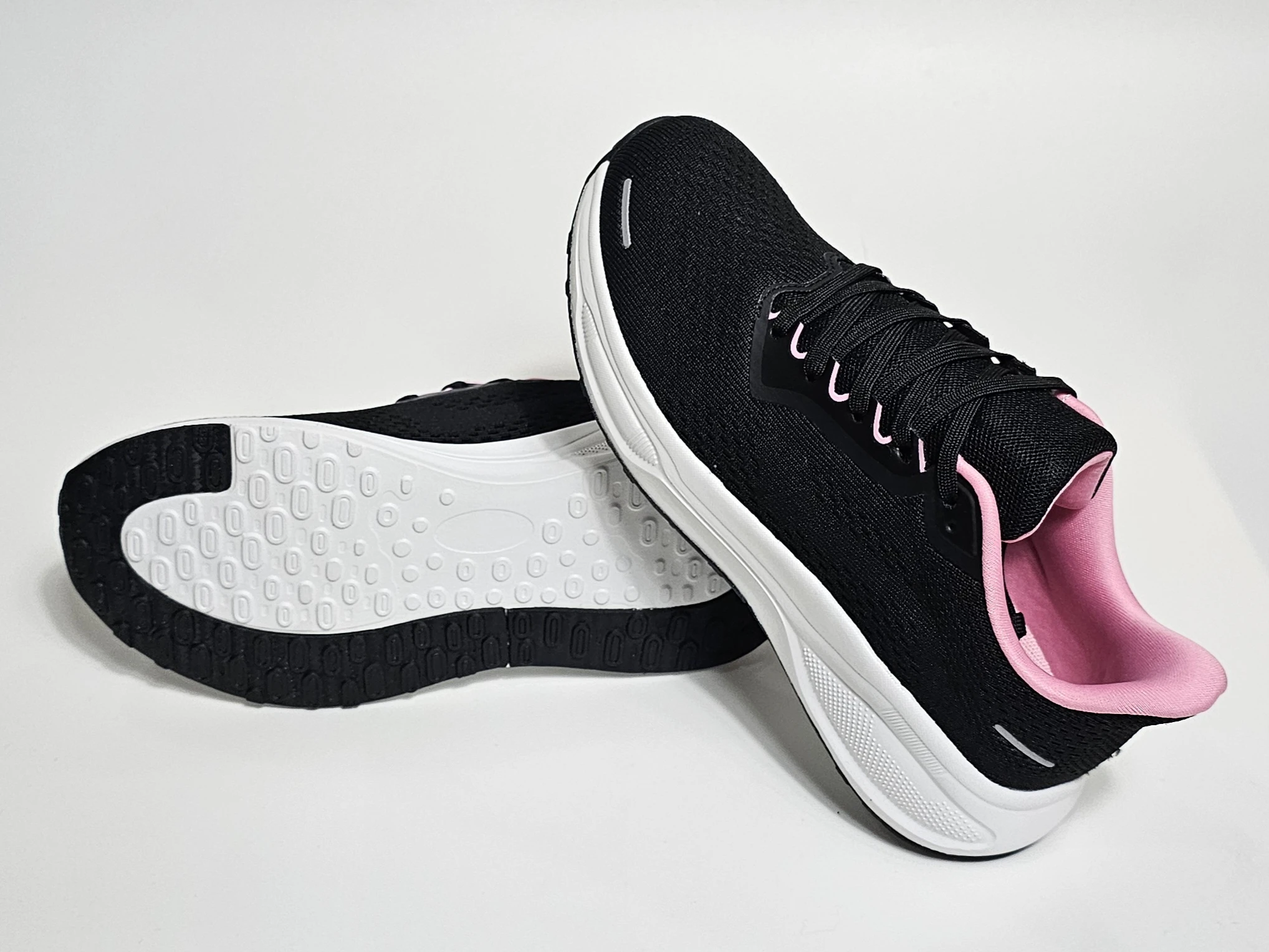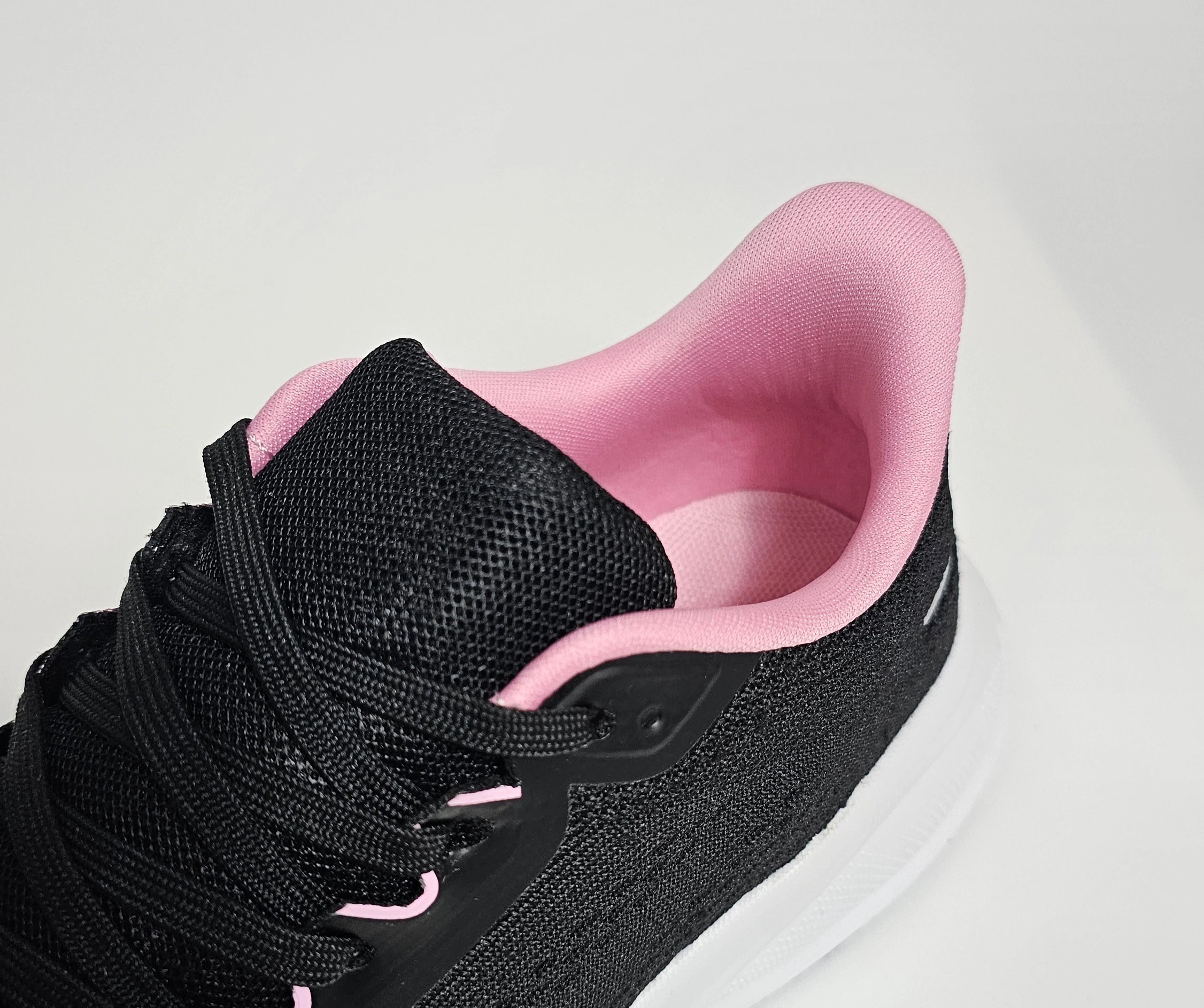 حذاء رياضي بتصميم أنيق يجمع بين اللونين الأسود والوردي.