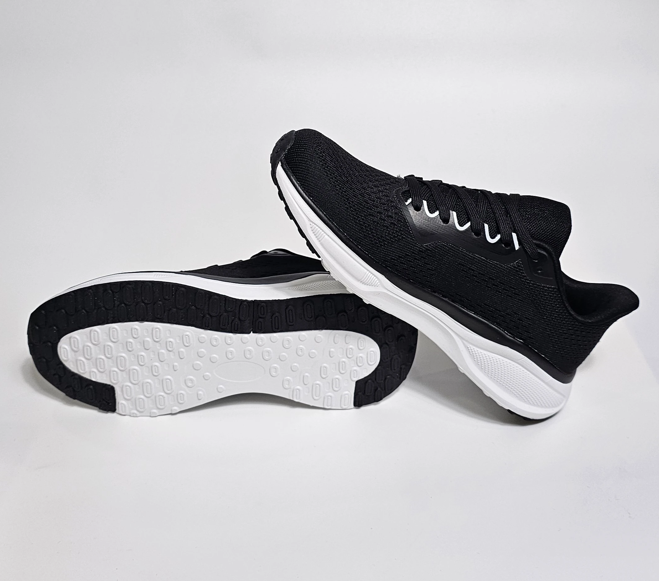 حذاء رياضي بتصميم أنيق يجمع بين اللونين الأسود والأبيض.