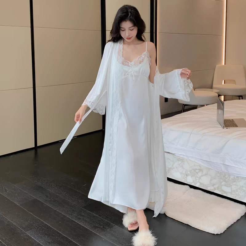 قميص نوم شفاف من الدانتيل الراقي والجميل من ثلاث قطع