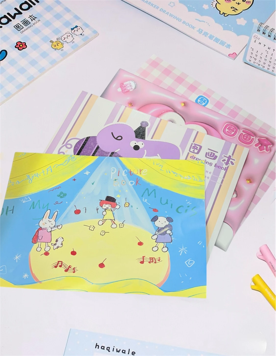 كراسة رسم بتصميم طفولي جذاب، مثالية للأنشطة الفنية والتعليمية.