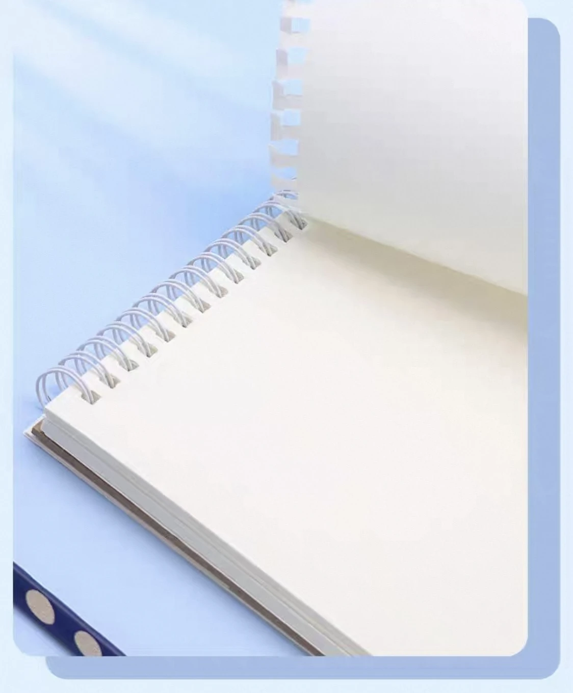 كراسة حلزونية بتصميم مستوحى من متجر حلويات، مزودة بنافذة دائرية صغيرة في الزاوية العليا،