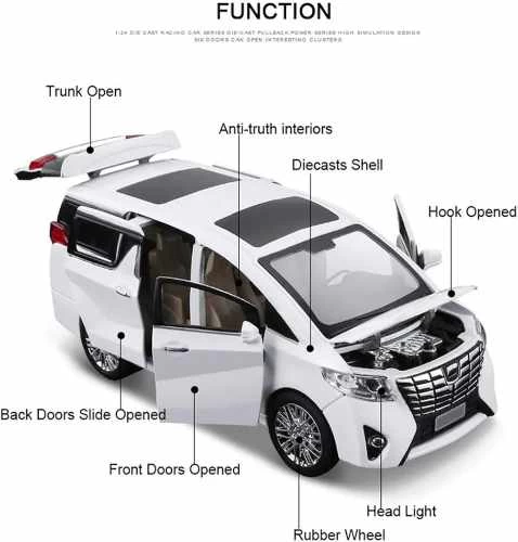 نموذج سيارة Toyota Alphard MPV المصنوع من السبائك المعدنية المصبوبة بمقياس 1:24 (اللون: أبيض، المقاس: 1:24)