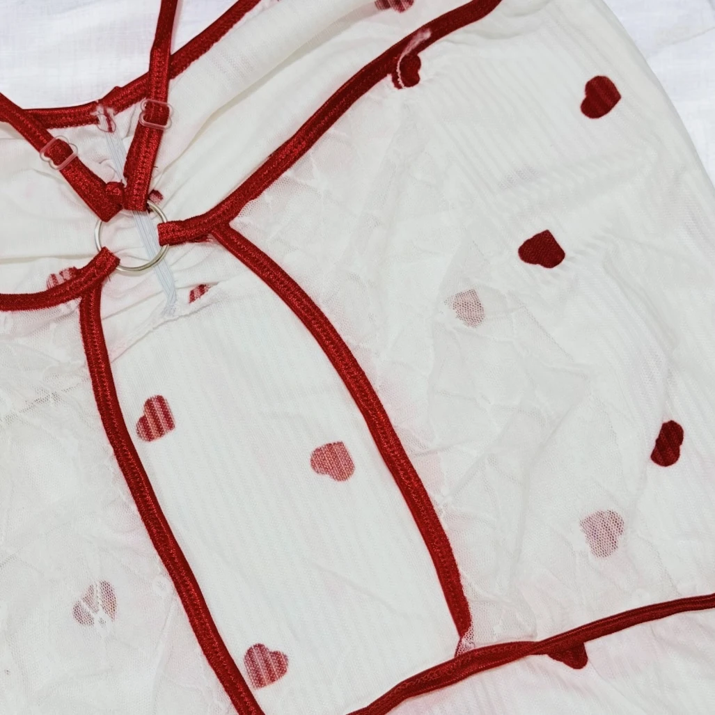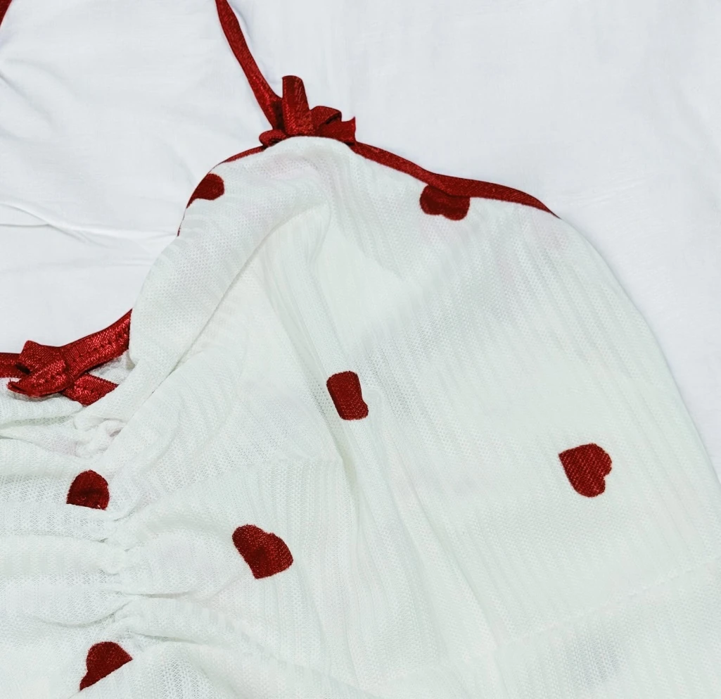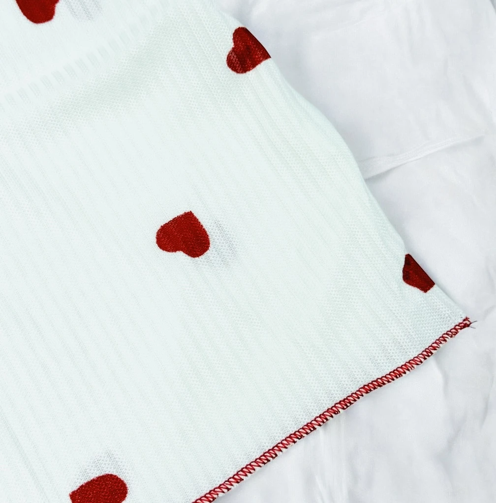 مزين بنقشة قلوب حمراء صغيرة موزعة بانسجام على كامل القماش.