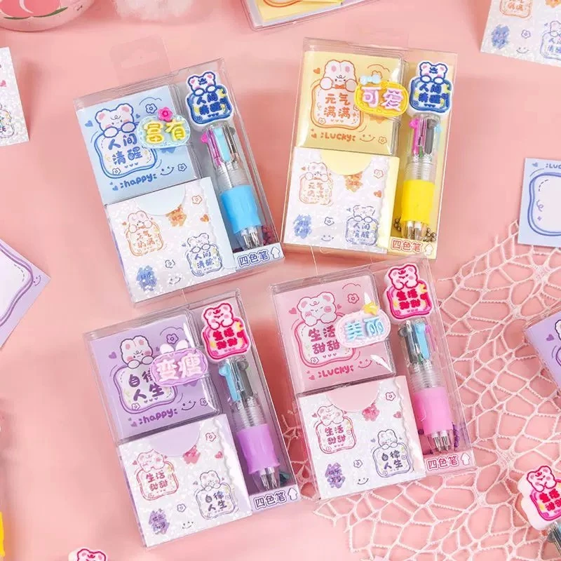 - القلم المرافق: قلم قصير ببدن سميك، مزين برأس شخصية كرتونية لطيفة. تصميمه يجعل الكتابة ممتعة، ويضيف عنصرًا تزيينيًا للمكتب أو الحقيبة.