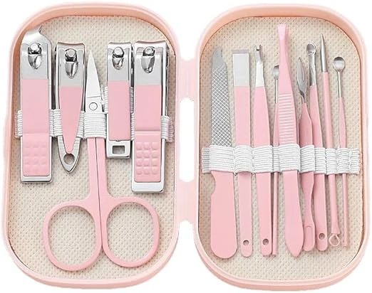 مجموعة ادوات تجميل ومقصافة اظافر محمولة، تأتي مع صندوق، مجموعة ادوات تشذيب الاظا