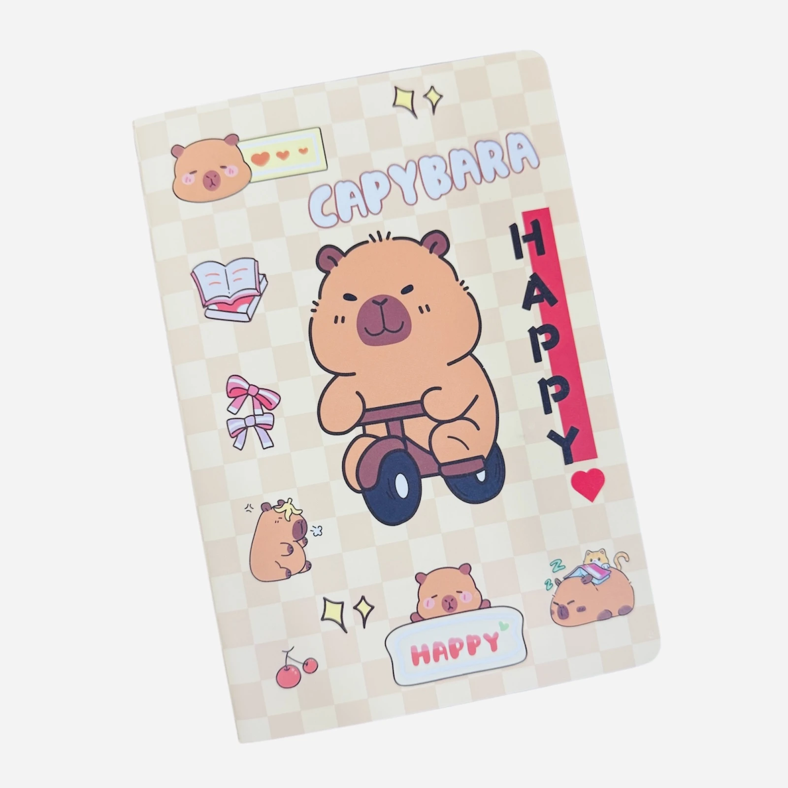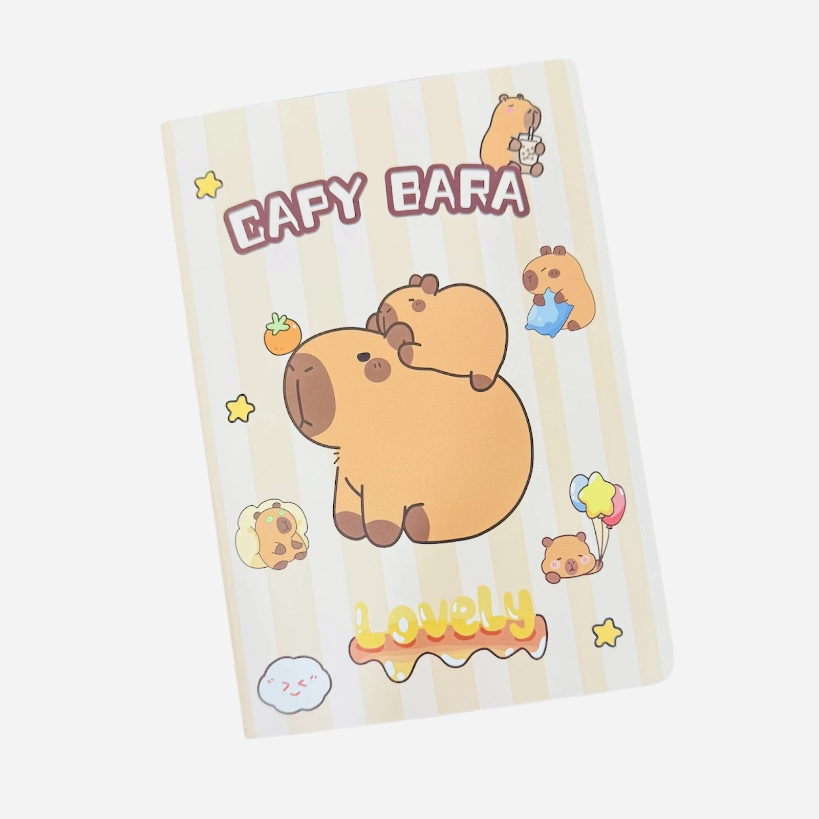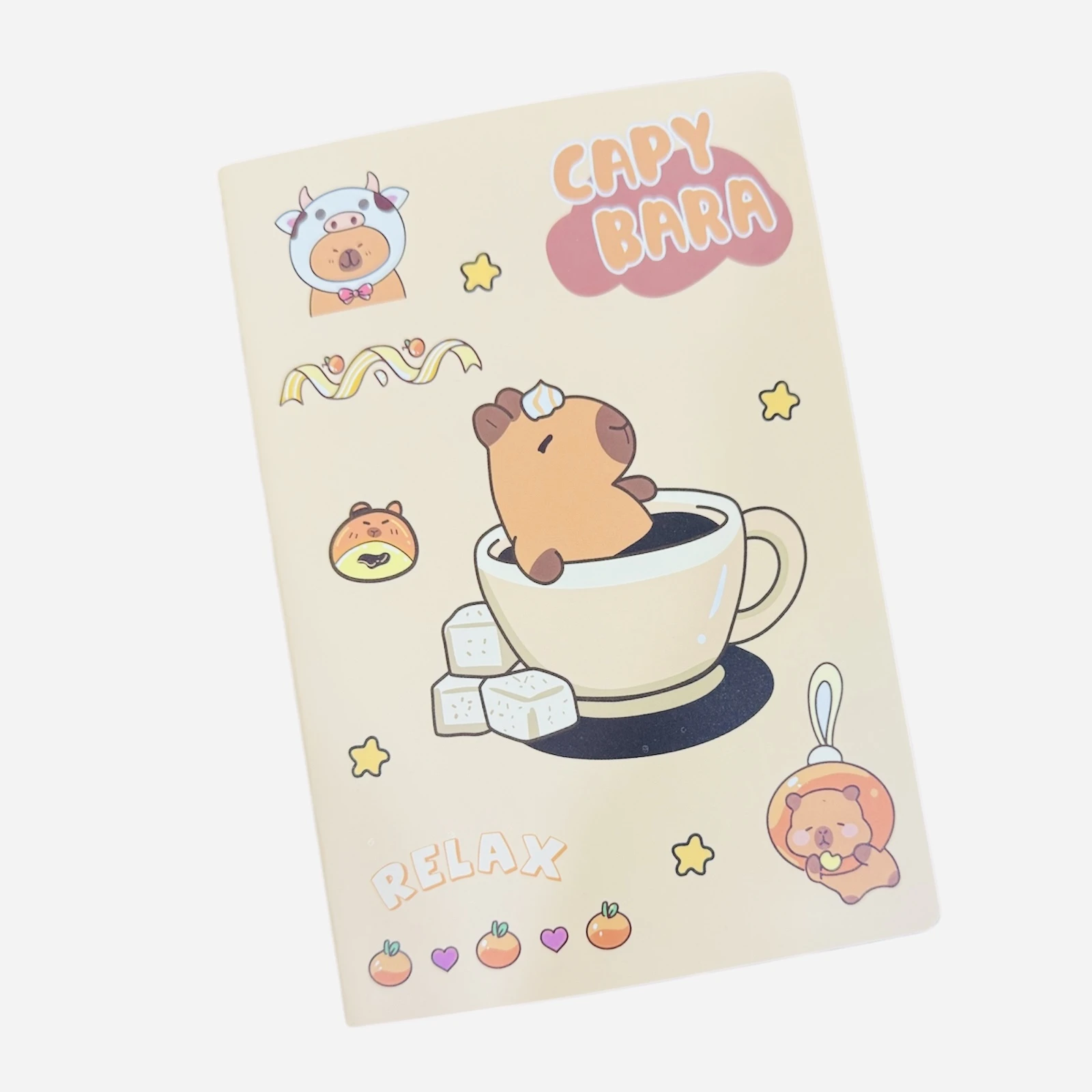 كل دفتر يتميز بغلاف كرتوني مبتكر يعرض شخصيات الكابيبارا في مواقف مرحة ومحببة،