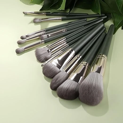 مجموعة فرش مكياج احترافية لكامل الوجه والعينين من 14 قطعة، شعيرات صناعية ناعمة ل