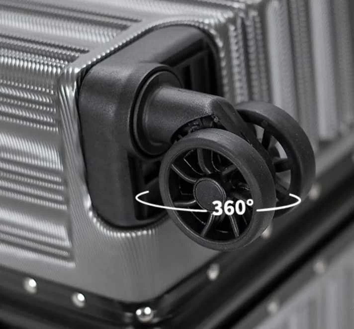 • العجلات والمقبض: عجلات دوارة مزدوجة صامتة متعددة الاتجاهات بزاوية 360 درجة توفر حركة سهلة في أي اتجاه. مقبض حقيبة العربة الخاص بنا مصنوع من سبائك الألومنيوم. يحتوي المقبض أيضًا على منشأة تلسكوبية ثلاثية المراحل.