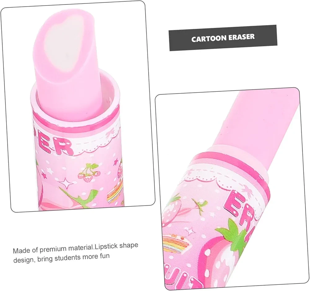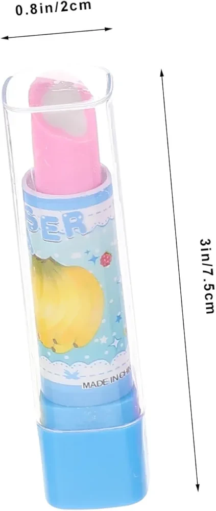 هذه الممحاة مصممة على شكل أحمر شفاه بألوان زاهية ورسومات مميزة للفواكه مثل الفراولة والبرتقال،
