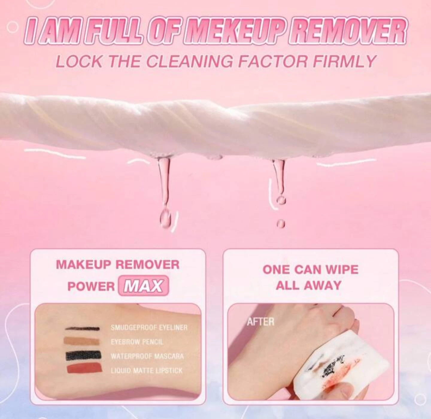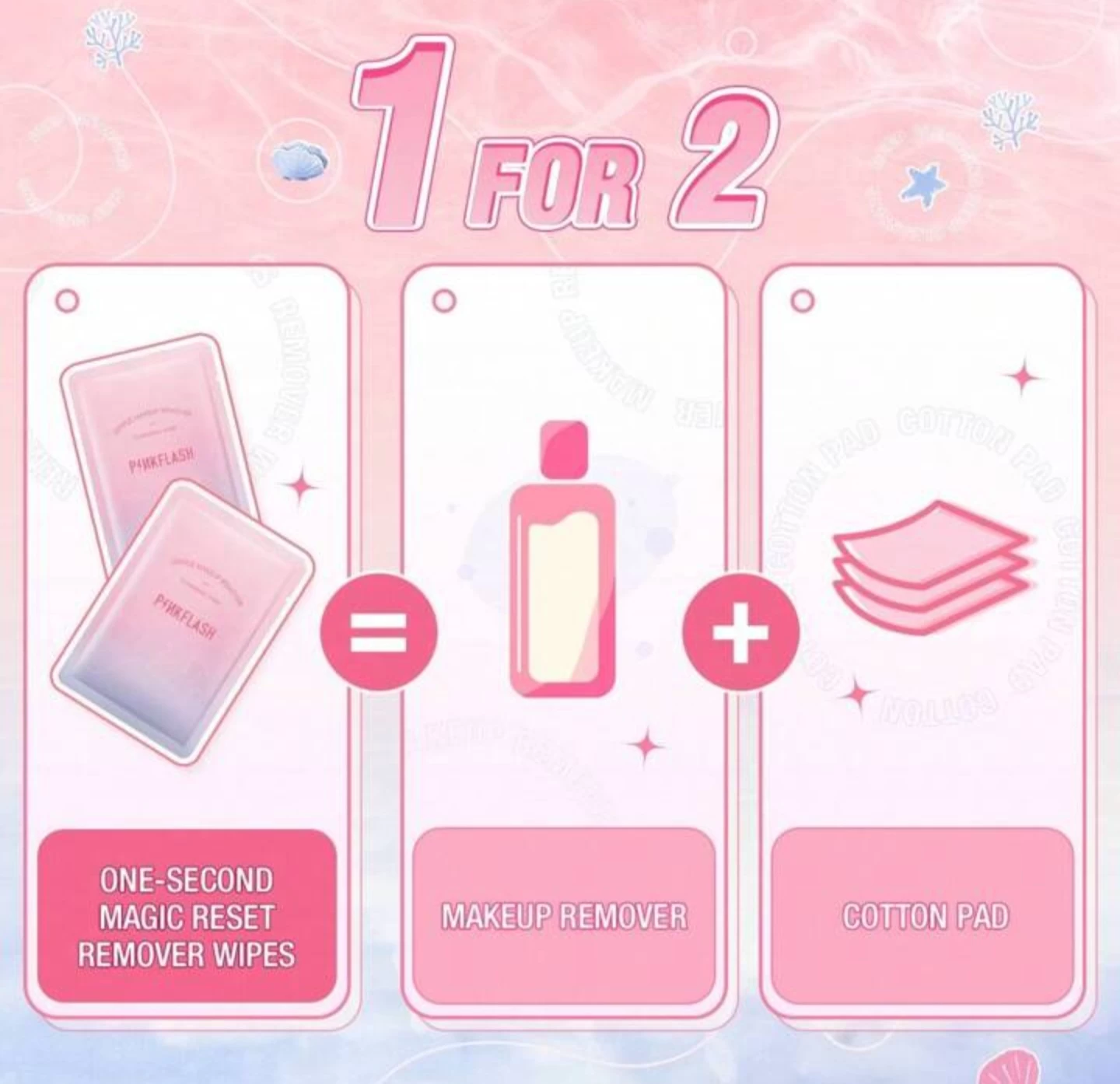 المنتج هو مناديل تنظيف لطيفة لإزالة المكياج من ماركة "PINKFLASH".