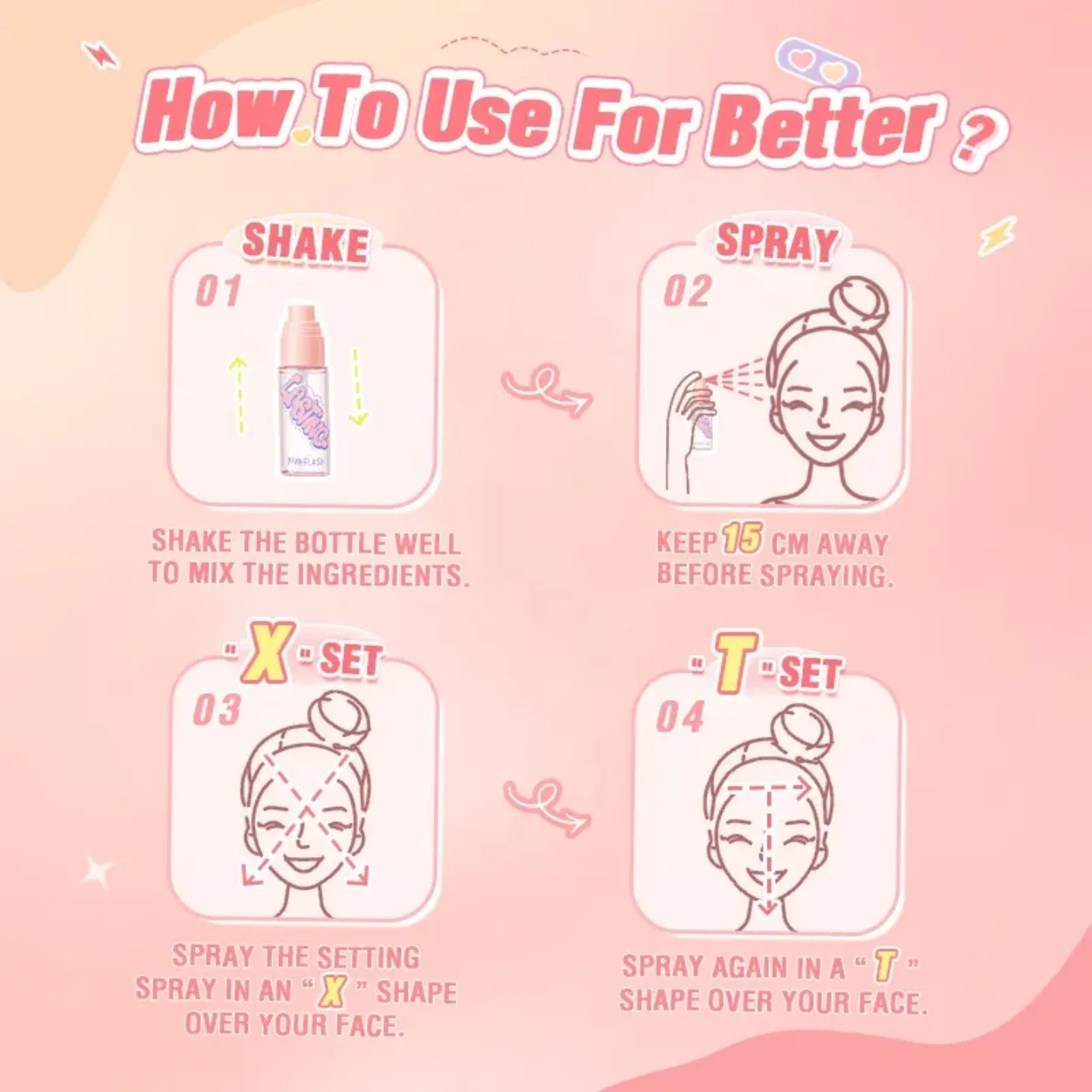 ينساب هذا الرذاذ فائق النعومة بالتساوي على الوجه، ويثبت مكياجكِ فورًا بلمسة نهائية منعشة وغير لزجة.