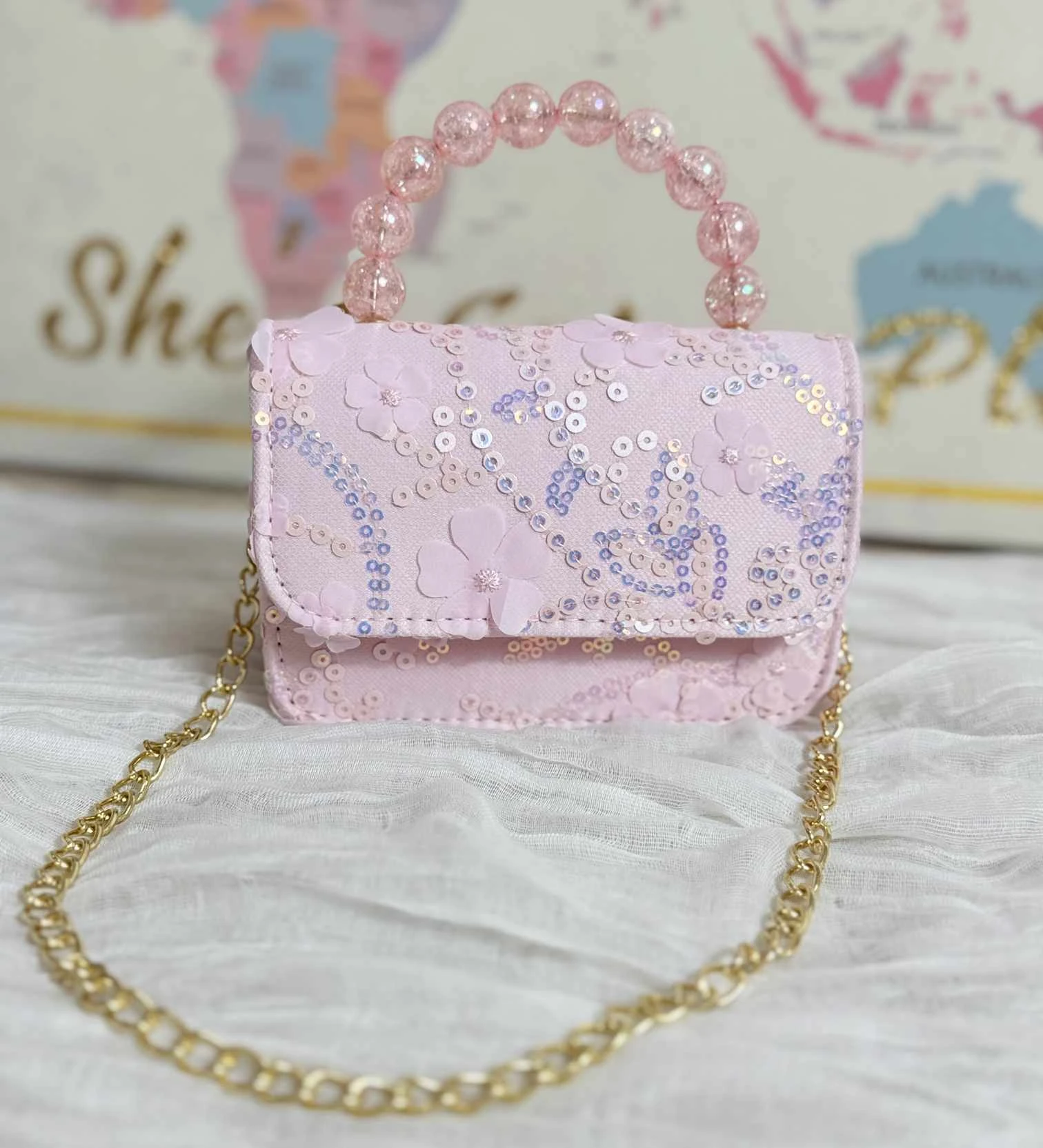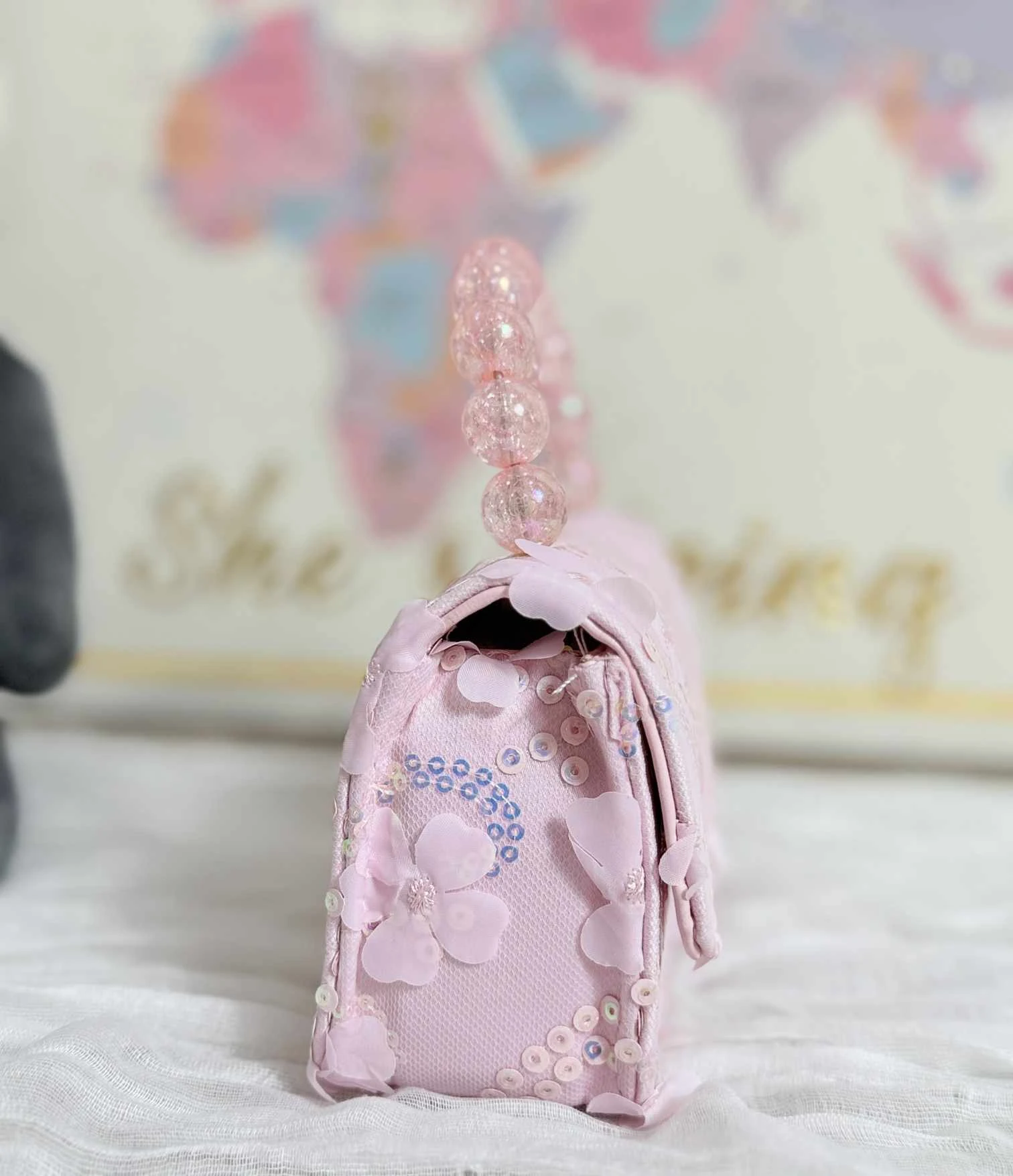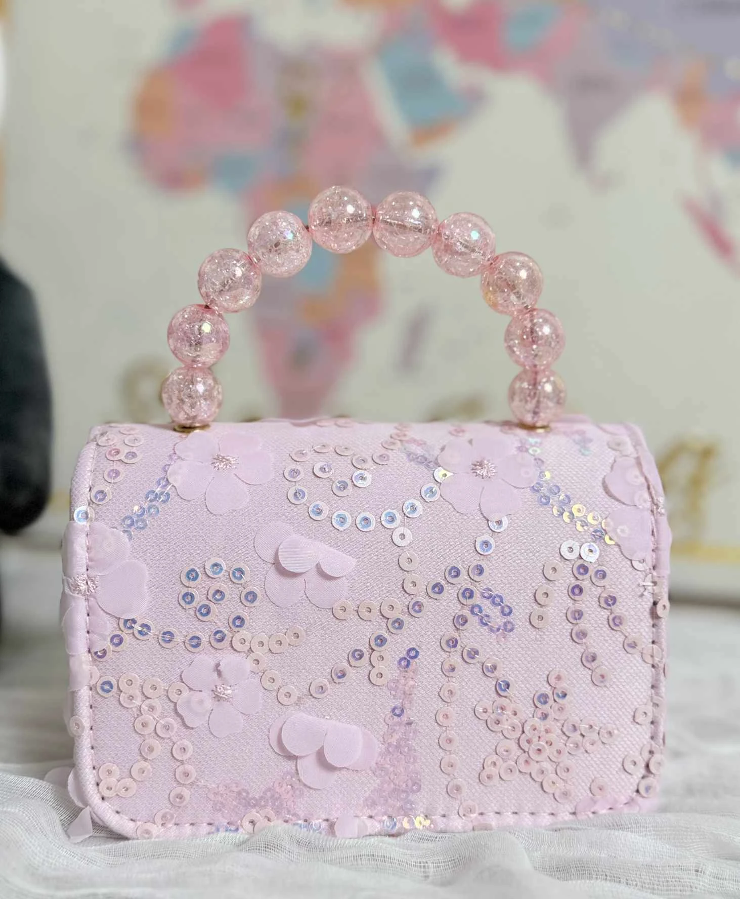 حقيبه يدويه صغيره للفتيات مع غطاء قابل للطي بتطريز ورود من الترتر وتعليقه من اللولو الجميل مناسب للحفلات اليوميه وحفلات العشاء