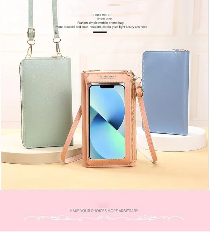 شنطة موبايل بشاشة تعمل باللمس للنساء، محفظة هاتف لطيفة من البولي يوريثين، شنط كر