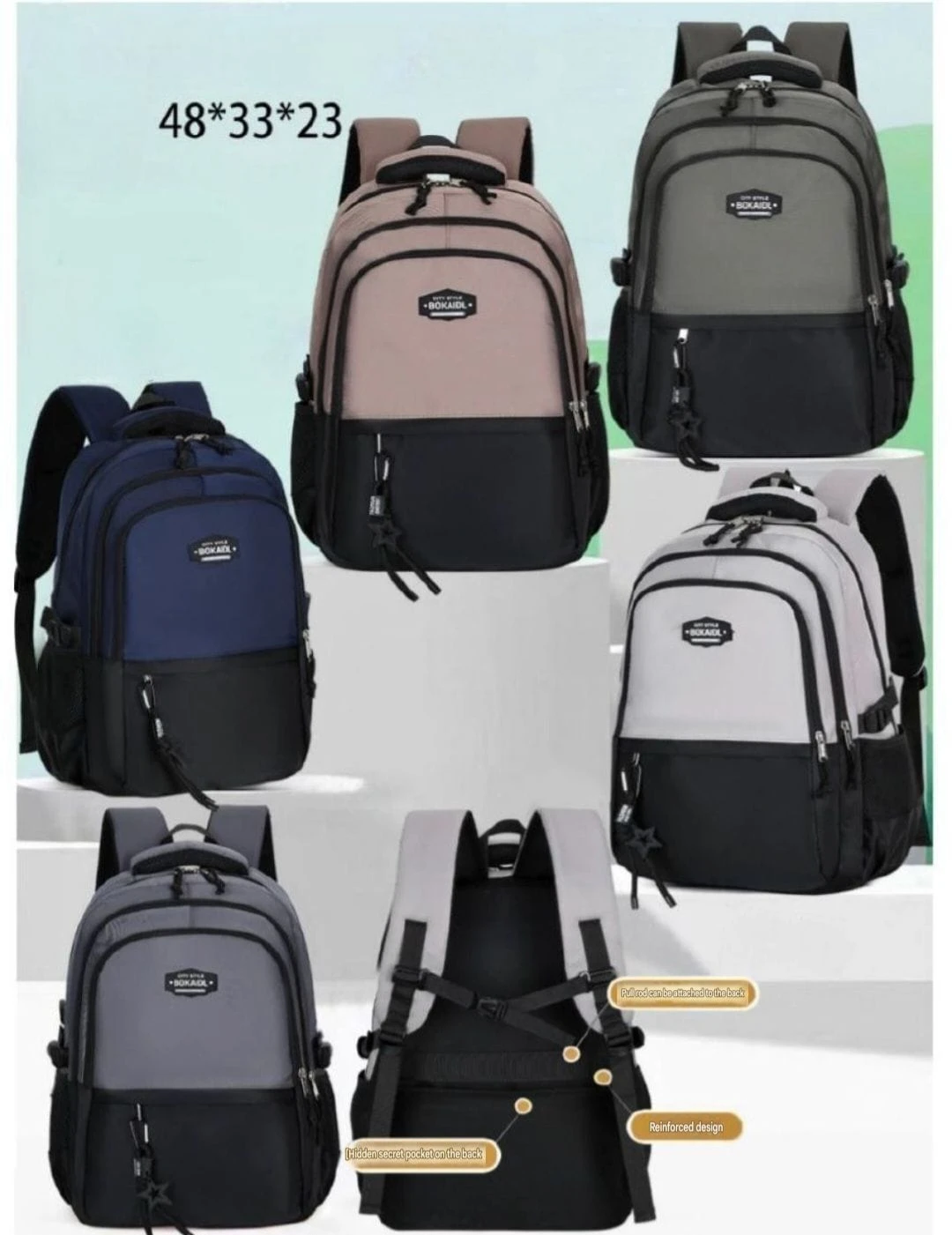 - حقيبة ظهر بلون رمادي وأسود وكحلي وغيرها بتصميم عملي