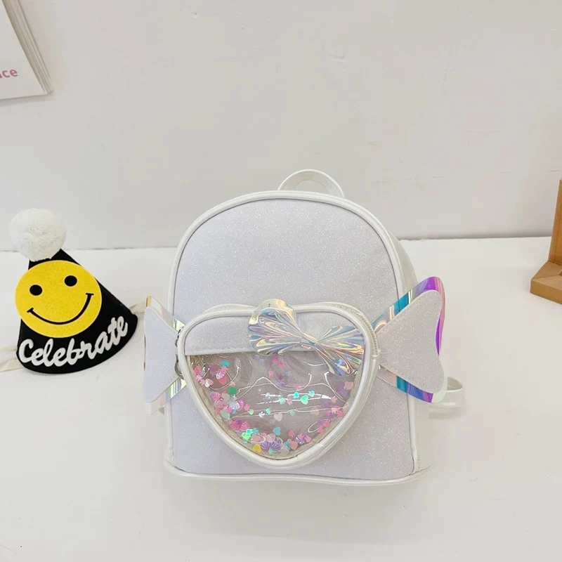 شنطه كتف بناتي باللون الابيض على شكل قلوب بداخلها خرز وبفيونكه واجنحه على شكل قلوب عمليه وجميله في كل المناسبات