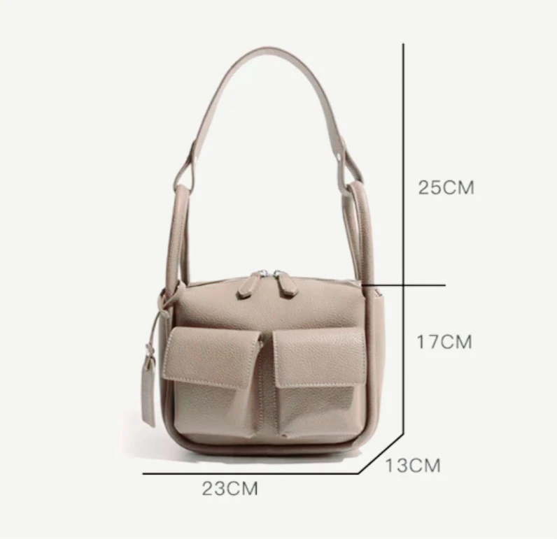 حقيبه نسائيه كاجوال جميله وانيقه. من الجلد الناعم وجيوب اماميه مربعه الشكل