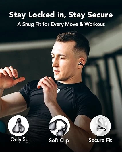 سماعات أذن لاسلكية رياضية مفتوحة بلوتوث 5.4 بمشغلات ديناميكية 12 ملم لمدة 20 ساع