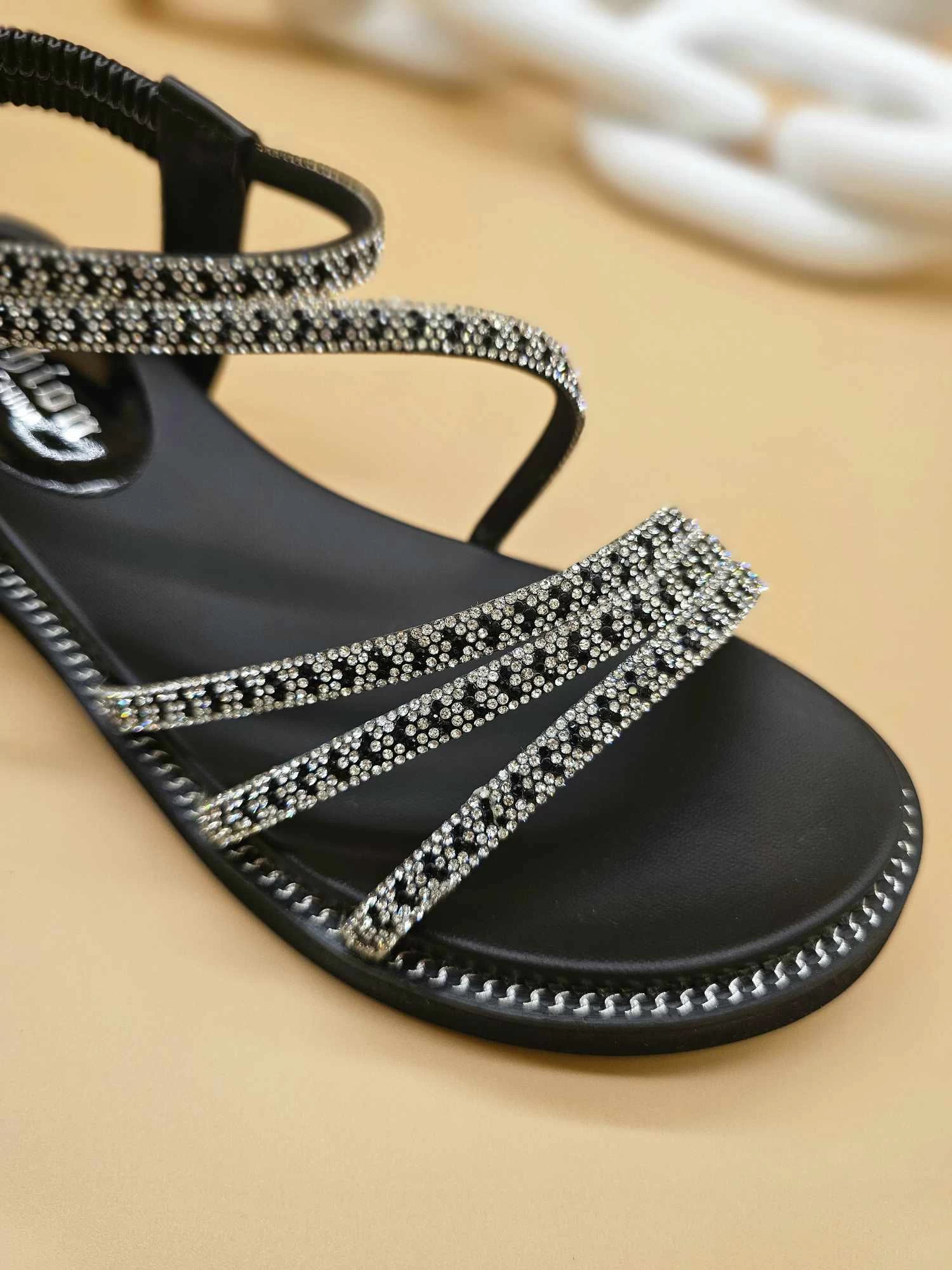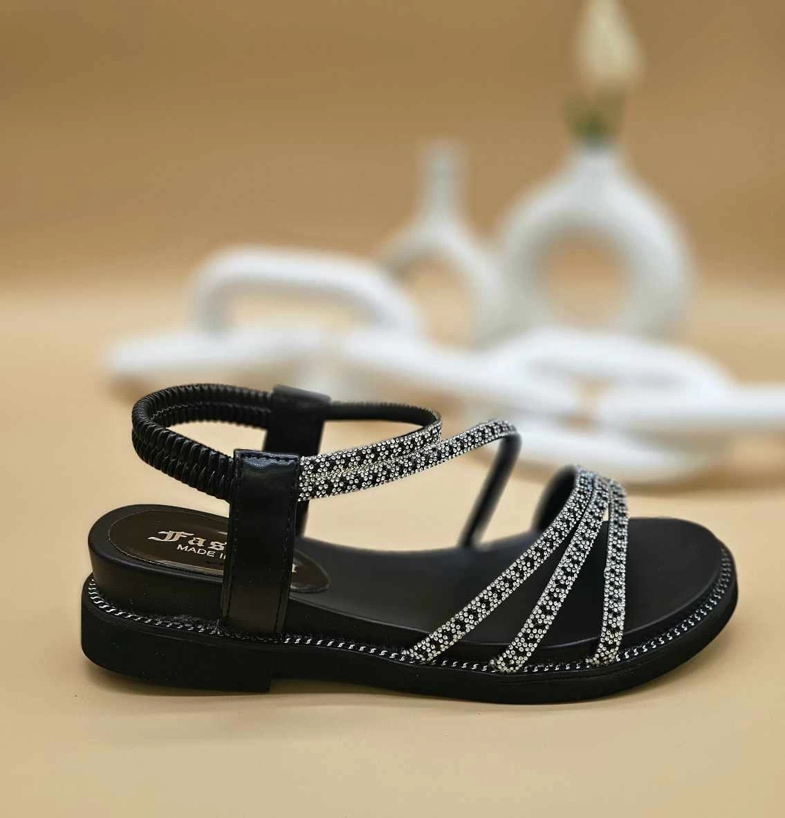 صنادل مسطحه ناعمه مزينه بحجر الراين سهله الارتداء