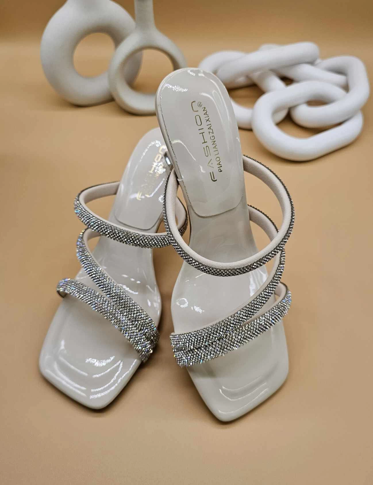 ، يتميز بأشرطة متقاطعة مزينة بأحجار لامعة تضفي عليه لمسة من الأناقة والفخامة.