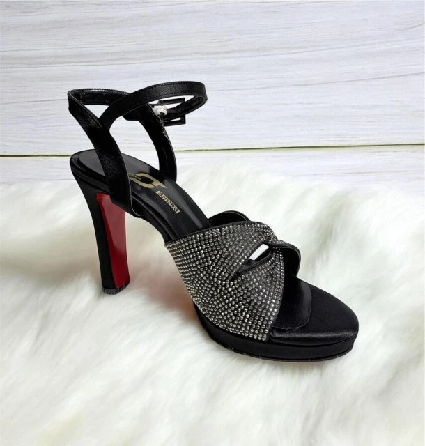 صندل سهرة بكعب عالي - مزين بفصوص لامعة