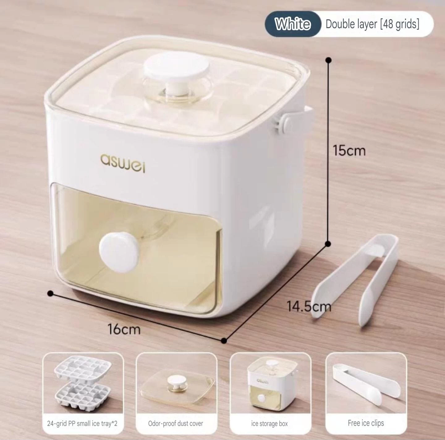 1. سعة مزدوجة (48 مكعب ثلج): يحتوي على طبقتين من صواني الثلج (كل صينية تحتوي على 24 مكعب).