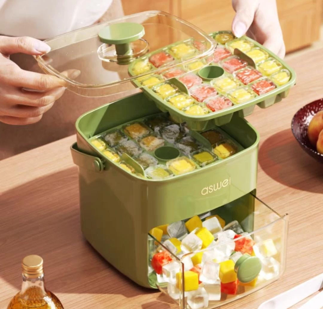 المنتج هو صندوق تخزين مكعبات الثلج متعدد الوظائف.