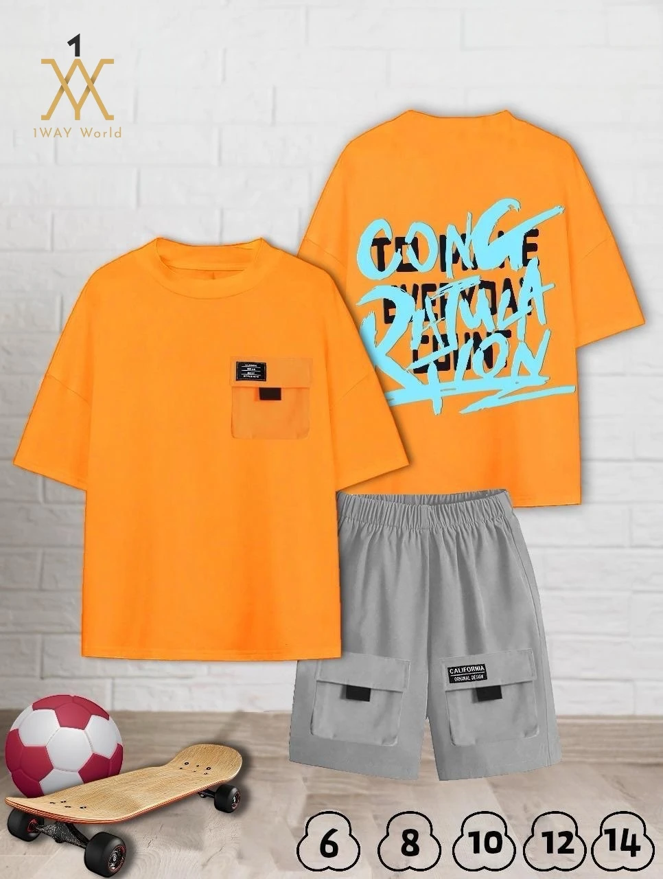 طقم أنيق ومريح للأطفال، يتكون من تيشيرت مزين بطبعات أنيقة،