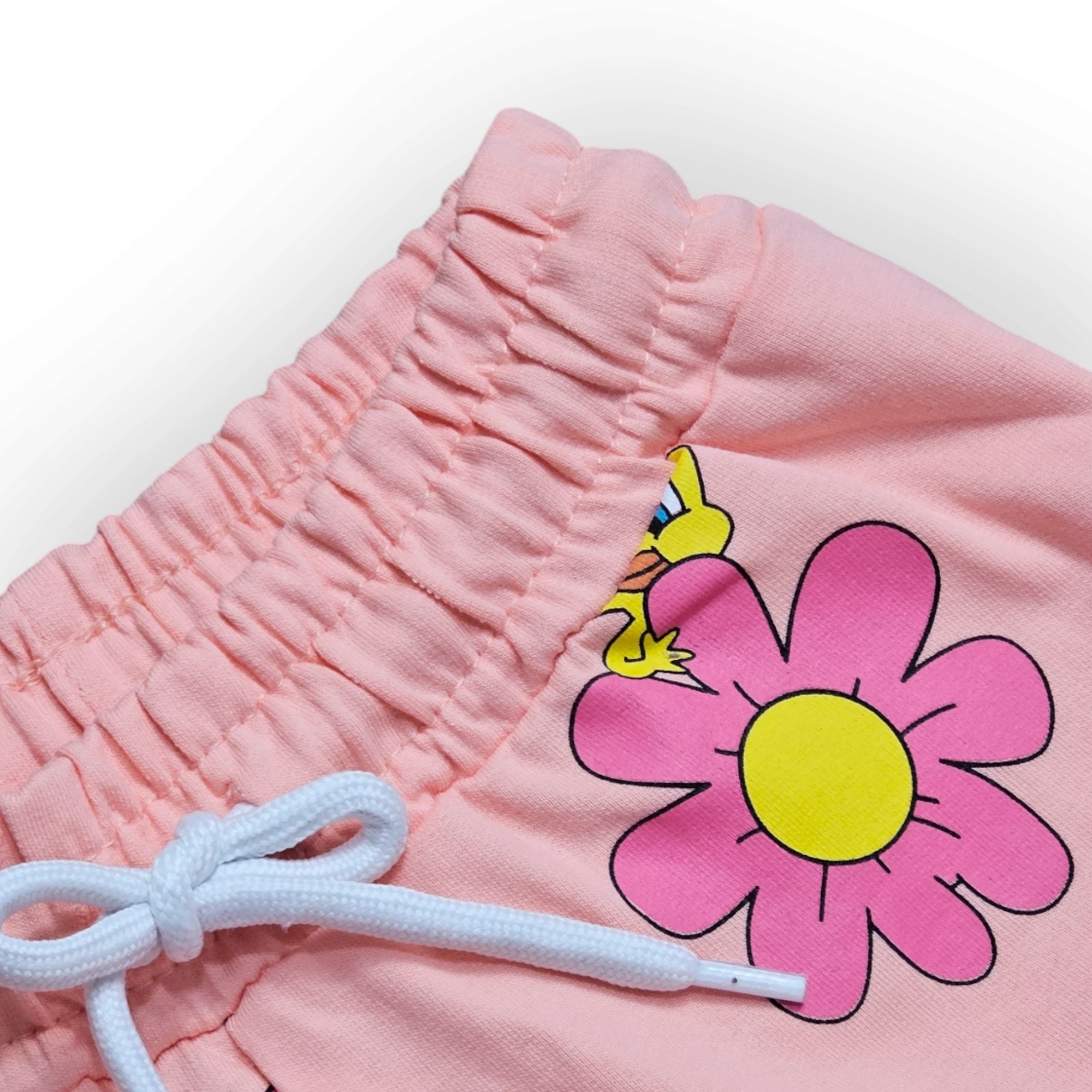 طقم تيشرت وشورت صيفي بطبعات كارتونيه تويتي بقماش ناعم سريع الجفاف وياقه دائريه واكمام قصيره