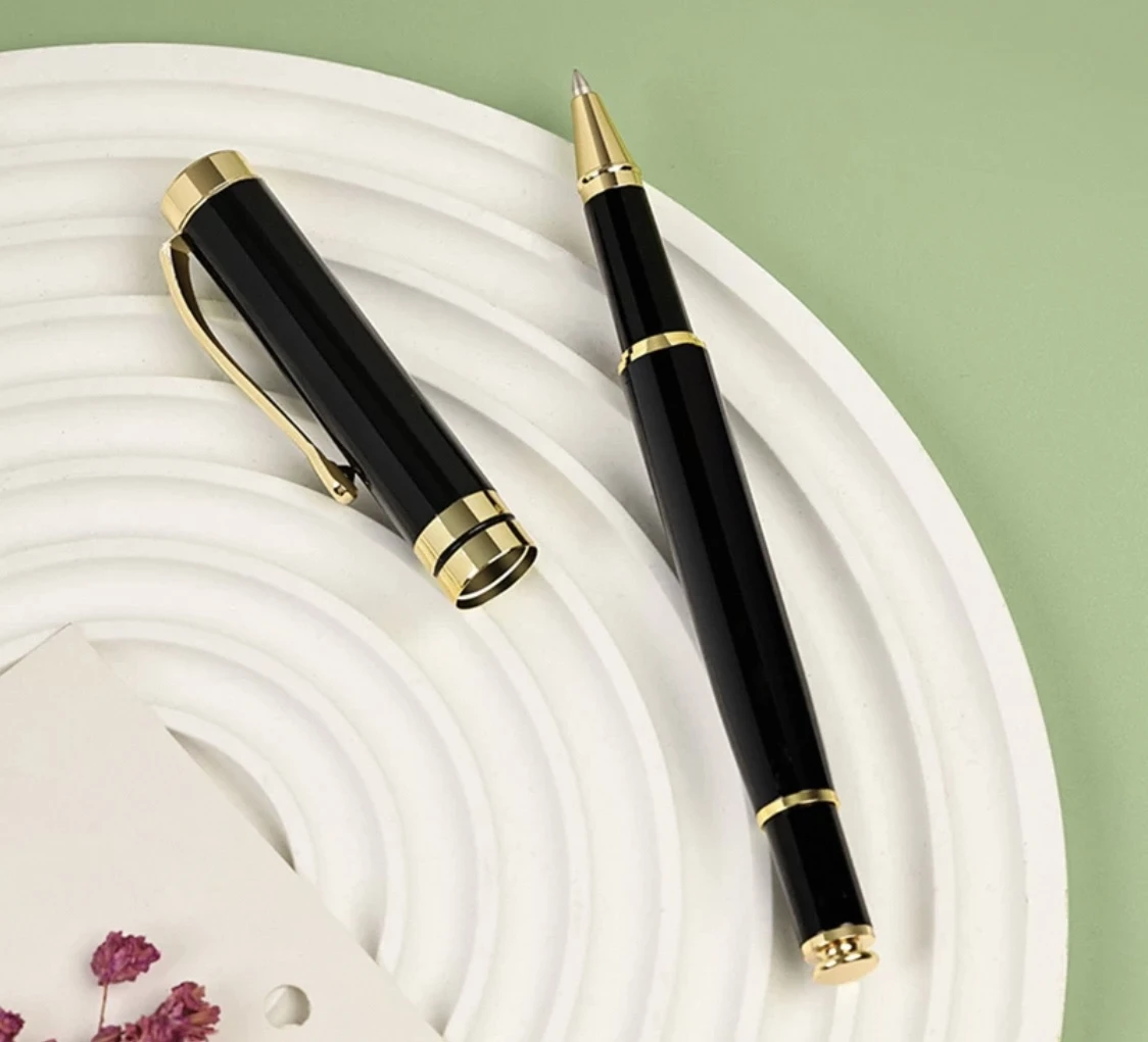 تصميم أنيق باللون الأسود مع تفاصيل ذهبية، يعكس الفخامة والدقة في الكتابة.