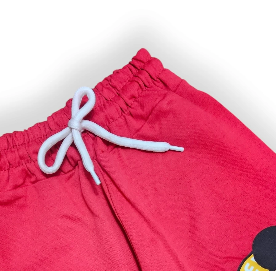 طقم ولادي جميل وانيق بتصميم كاجوال مكون من تيشرت بطبعات كرتونيه وبنطال بخصر مطاطي مناسب في الاجواء البارده