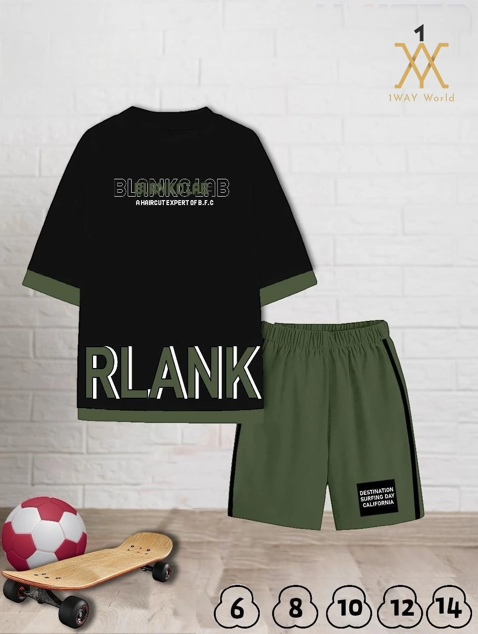 طقم ولادي قطني مريح وعصري، يتكون من تيشيرت أسود بأطراف خضراء،