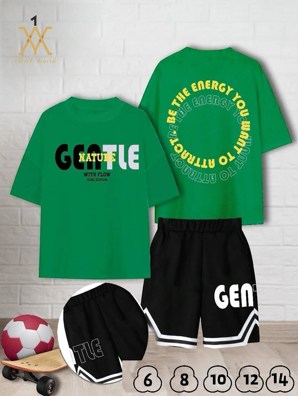 يتميز التيشيرت بتصميم شبابي بطبعات جريئة، بينما يأتي الشورت بخصر مطاطي لمنح راحة مثالية طوال اليوم.