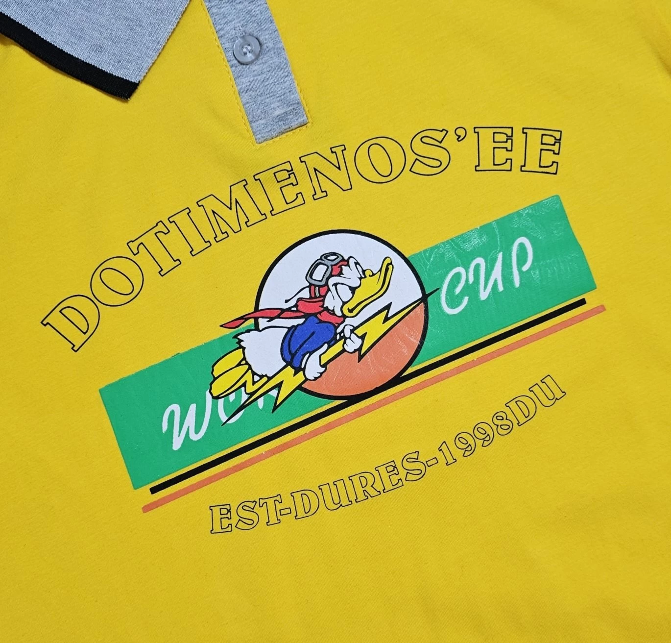 مزين بنص "DOTIMENOS'EE" و "W CUP" ورسم ملون في الوسط.