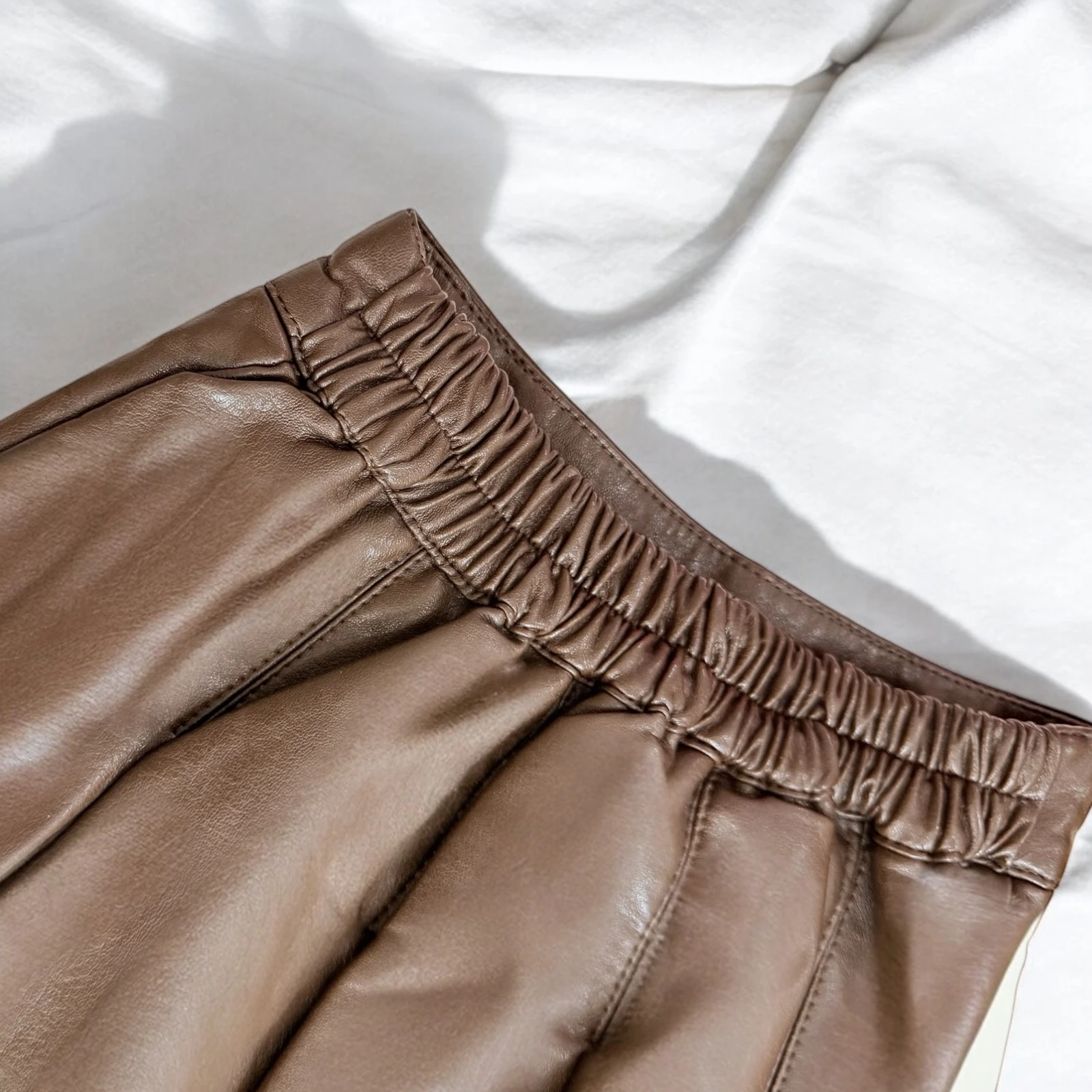 - الخامة: جلد صناعي لامع بجودة عالية، يمنح مظهرًا فاخرًا مع ملمس ناعم ومريح.